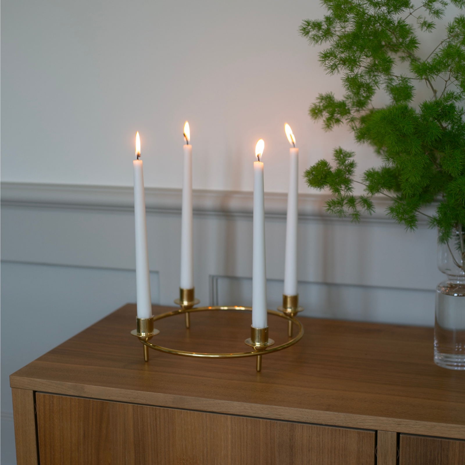 Ljusstaken är tillverkad i mässing och blir en fin inredningsdetalj på det dukade bordet eller i fönstret.• Adventsljusstake för fyra ljus