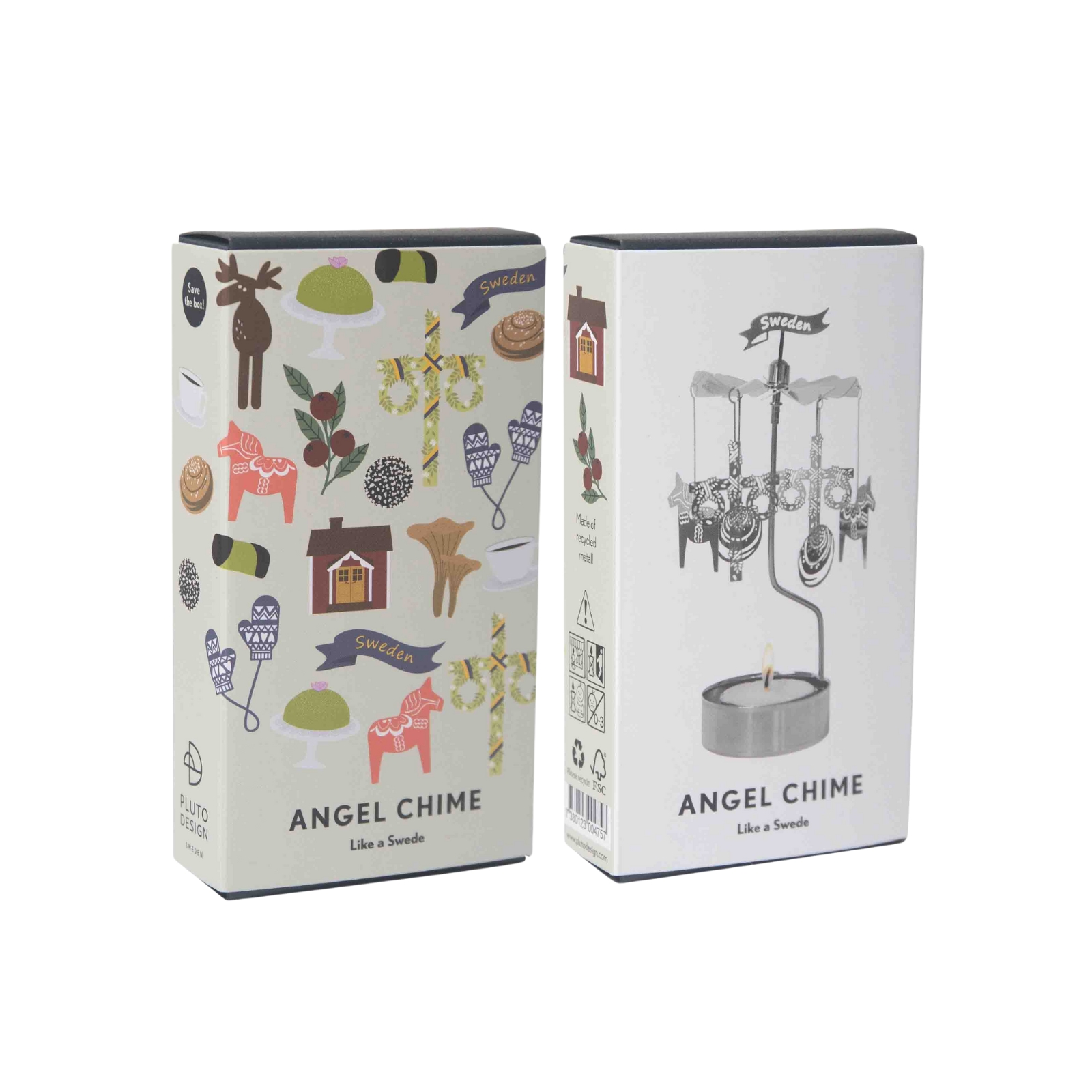 Motiven är klassiska svenska symboler som kanelbulle, midsommarstång och dalahäst, vilket gör änglaspelet till en perfekt souvenir eller en uppskattad present.