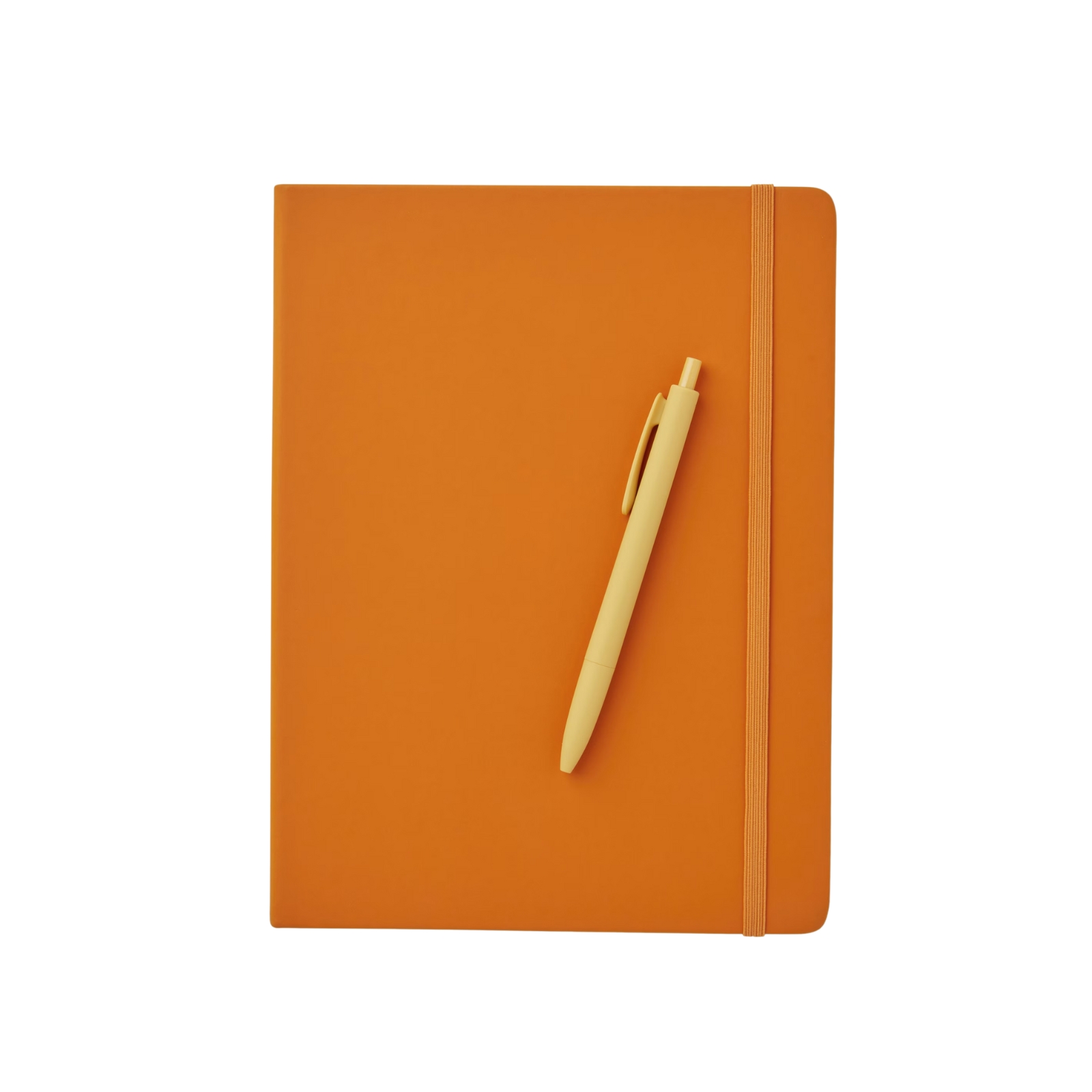 Skrivbok klädd i konstläder med färgmatchad elastisk snodd, perfekt att ta med i handväskan eller på resan.
