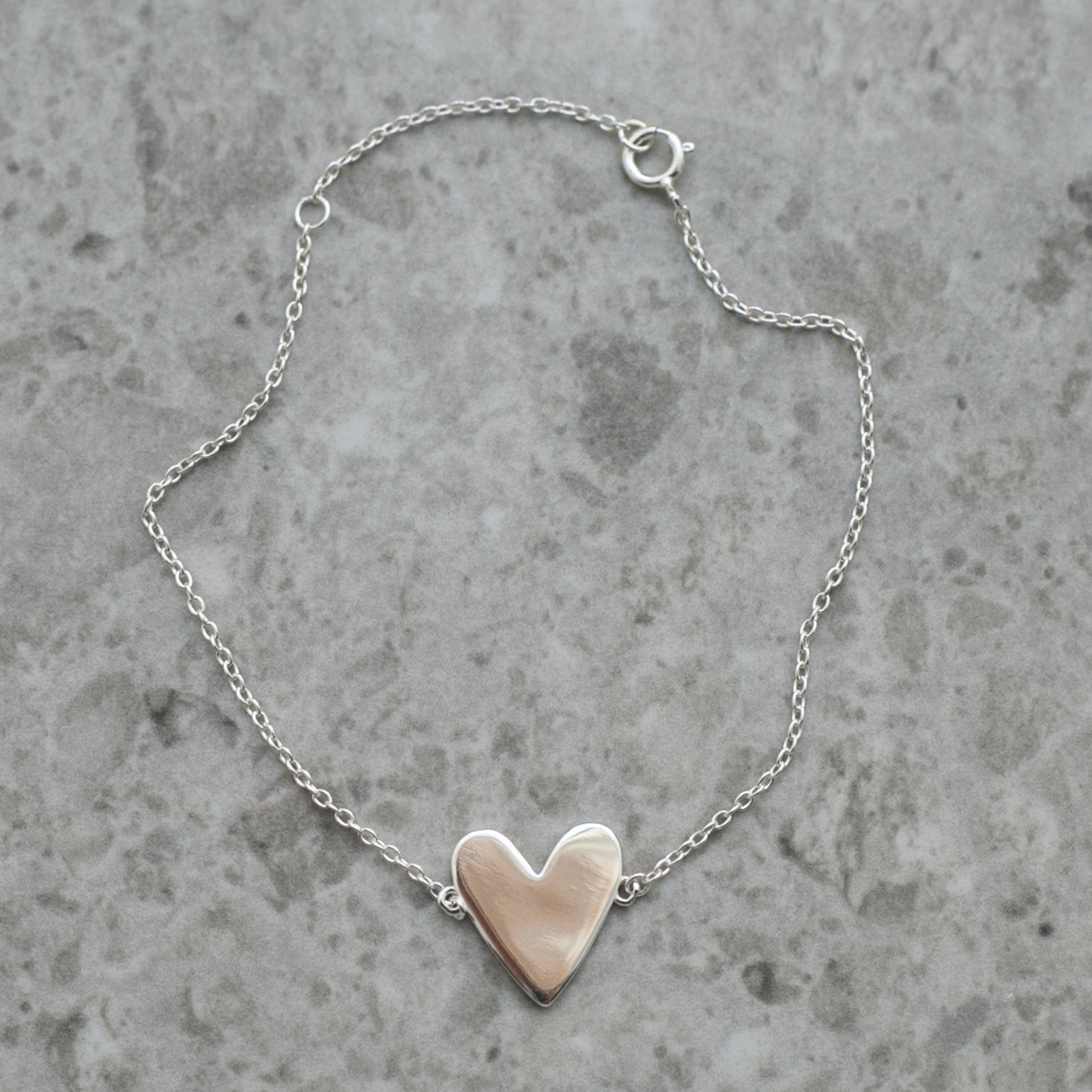 Armband Freja med hjärtberlock i silver. Freja är ett armband att bära varje dag med en enkel, stilren berlock i form av ett hjärta som påminner om kärlek, styrka och närvaro. Den mjuka formen och den tidlösa designen gör det lika fint till vardag som till fest och passar de flesta stilar.