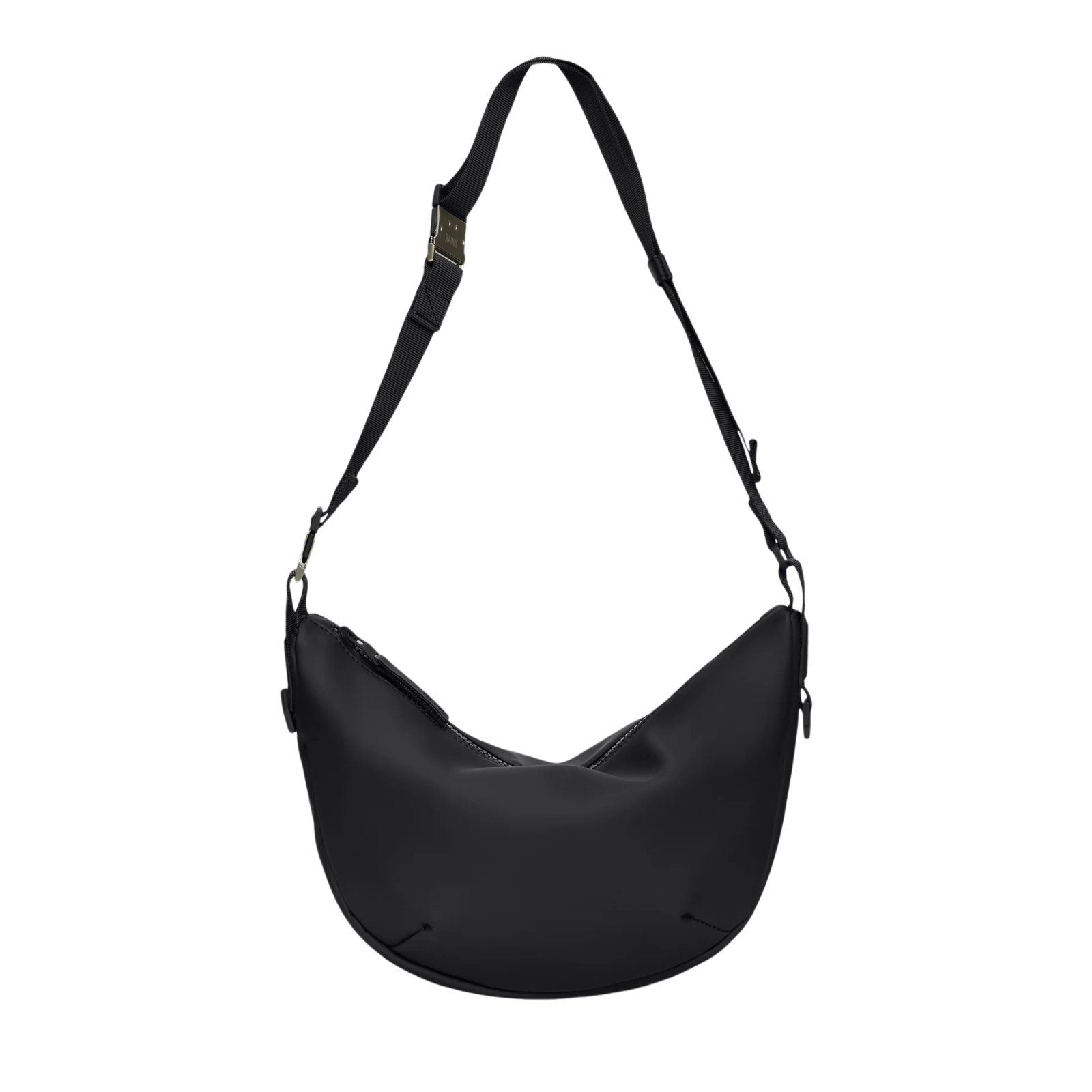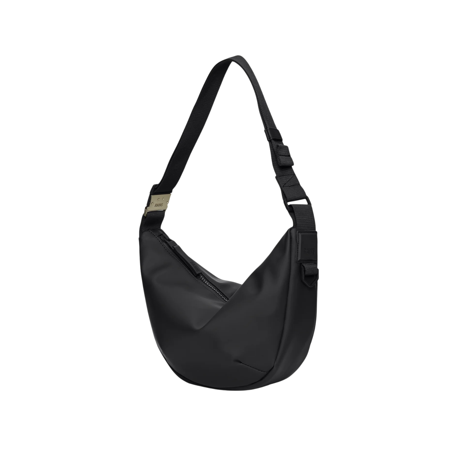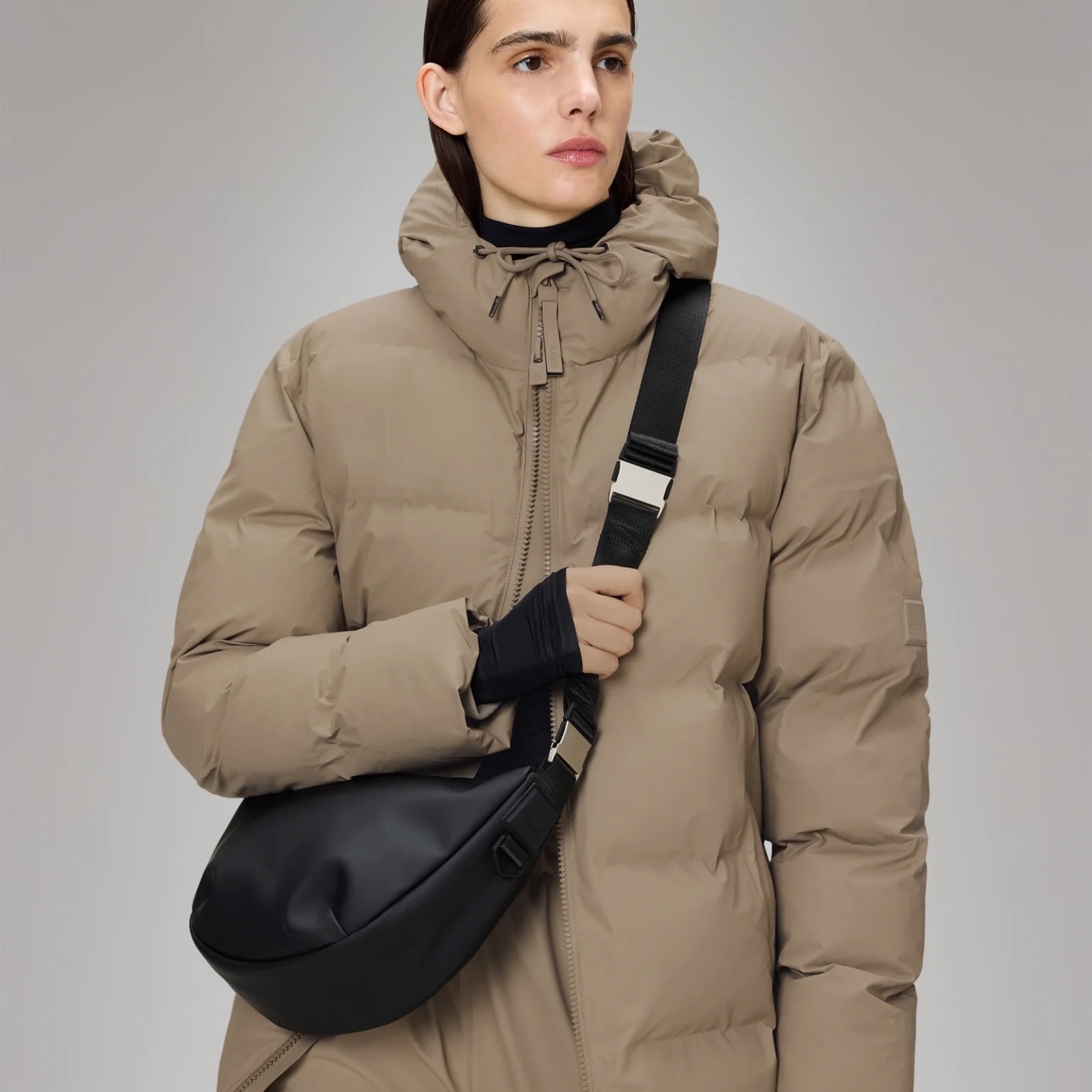 Designen har en justerbar vävd axelrem med en kontrasterande del. Sätt fast den avtagbara delen för lite kontrast – eller ta bort den för en mer stilren look. Borstat silverfärgat spänne, i kombination med varumärkesdetaljer av silikon, ger en förhöjd touch åt den mjuka stilen och känslan. Valera Shoulder Bag är gjord av Rains signaturtyg i PU med beläggning på en mjukare baksida.