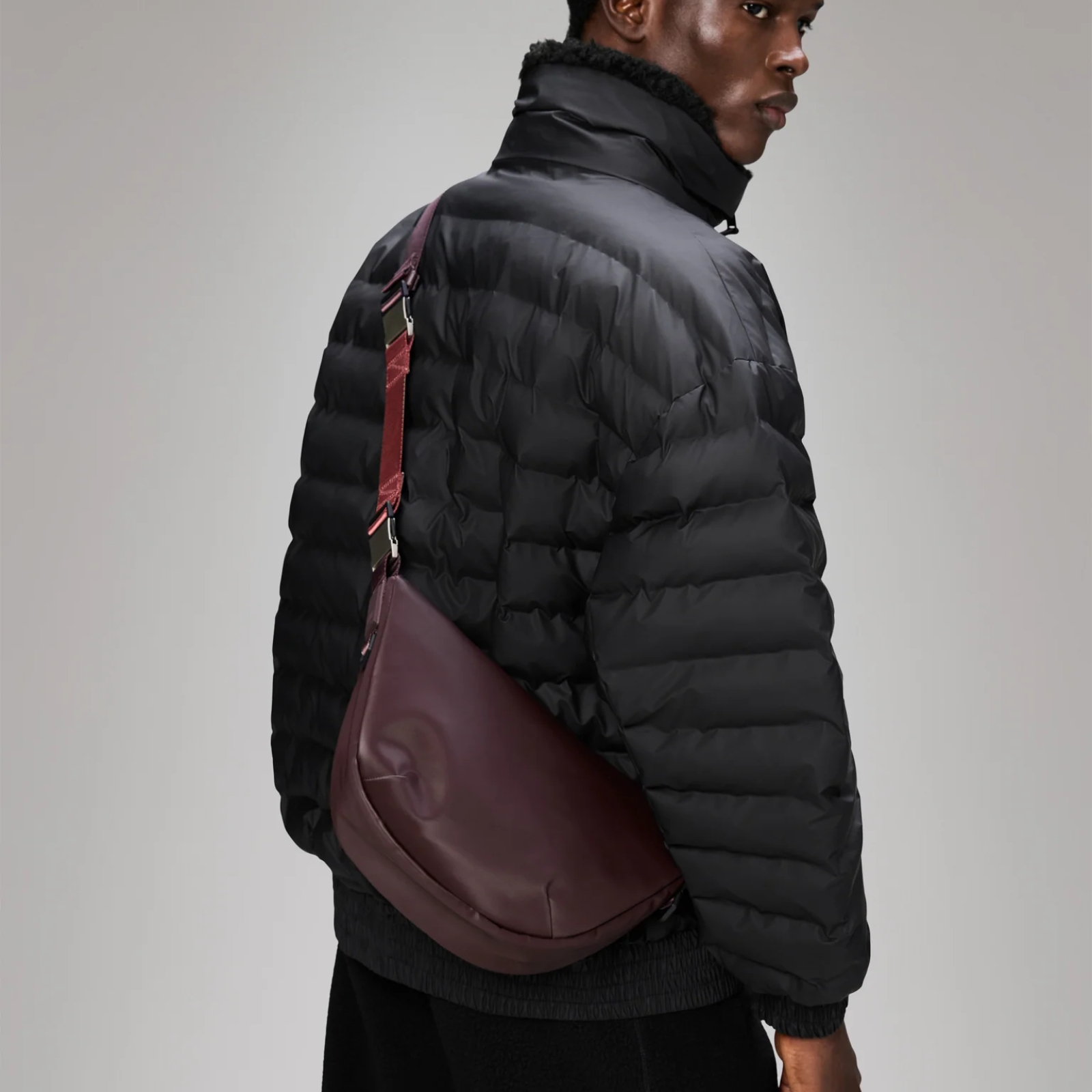 Designen har en justerbar vävd axelrem med en kontrasterande del. Sätt fast den avtagbara delen för lite kontrast – eller ta bort den för en mer stilren look. Borstat silverfärgat spänne, i kombination med varumärkesdetaljer av silikon, ger en förhöjd touch åt den mjuka stilen och känslan. Valera Shoulder Bag är gjord av Rains signaturtyg i PU med beläggning på en mjukare baksida.