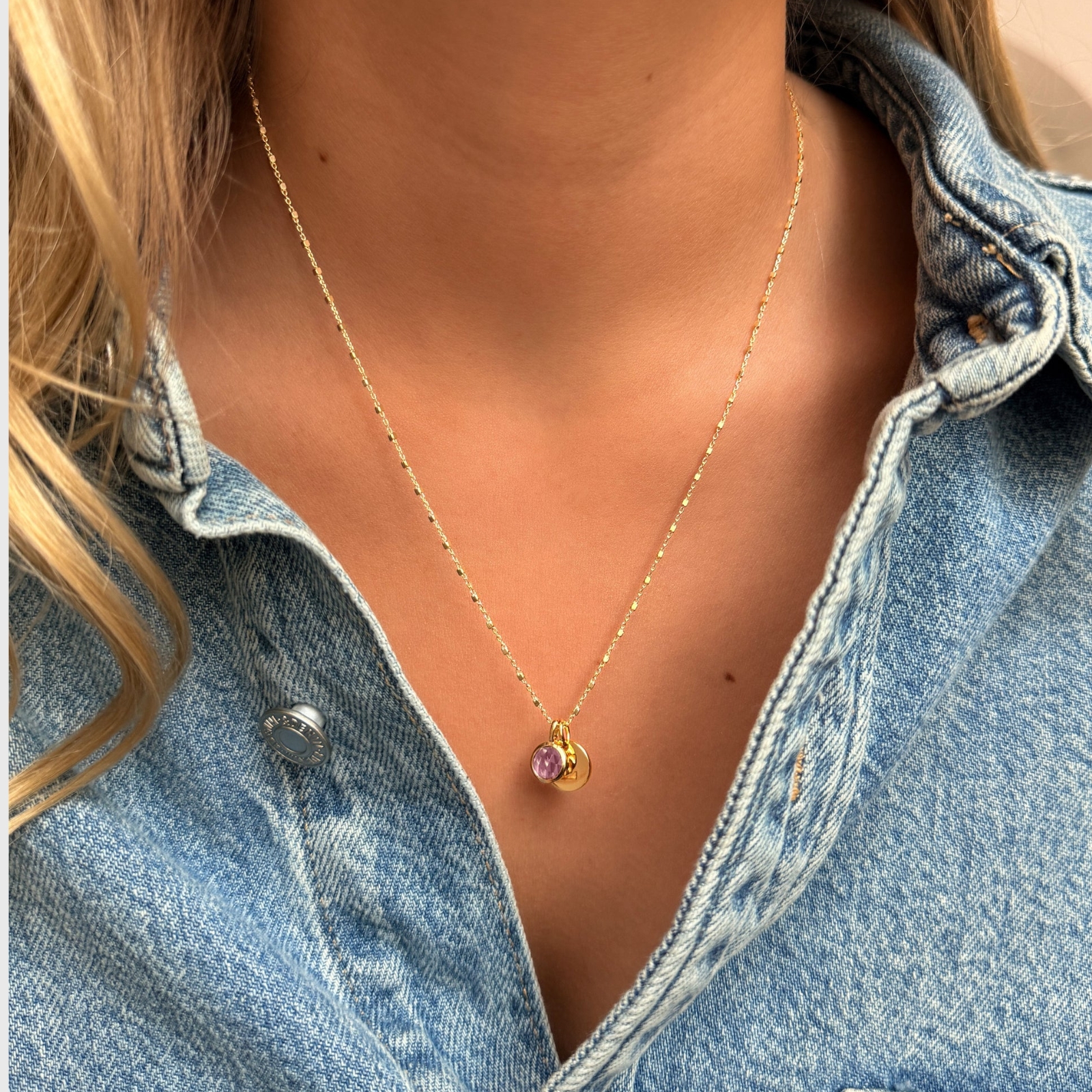 Syster P firar sitt 20-årsjubileum med en efterlängtad nyhet – Beloved Birthstones! Februaris månadssten är en handgjord berlock med en infattad ametist och detaljer i äkta sterlingsilver, 100% återvunnet, pläterat med 18K guld. Välj månadsstenen för din egen månad, för någon speciell, eller helt enkelt din favoritfärg. Ett personligt smycke perfekt att bära varje dag, eller som en meningsfull present.