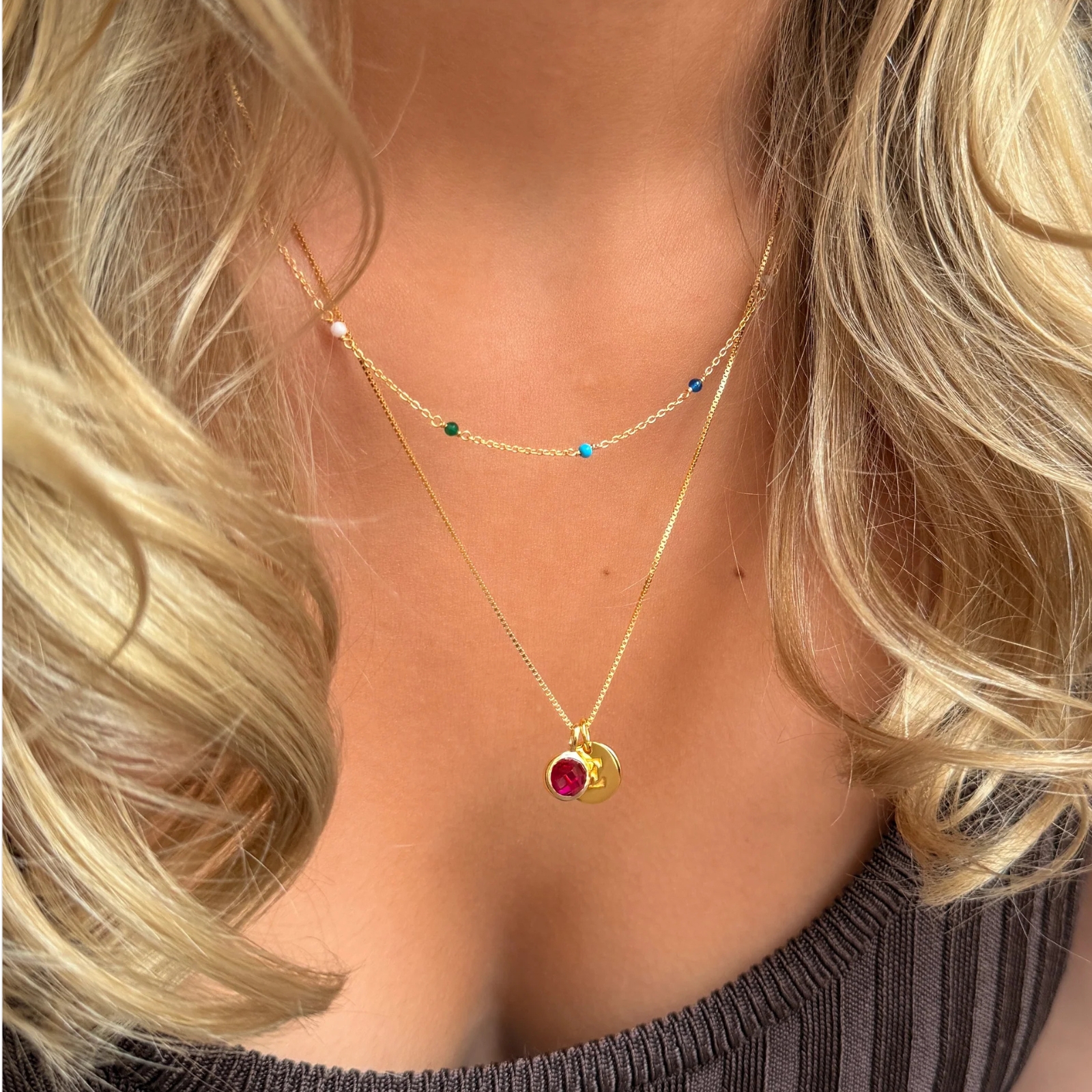 Syster P firar sitt 20-årsjubileum med en efterlängtad nyhet – Beloved Birthstones! Rubin är julis traditionella månadssten och har länge symboliserat kärlek, styrka och passion. I detta smycke används en labbodlad rubin som bär samma intensiva röda färg som den klassiska ädelstenen. Handgjord i äkta sterlingsilver, 100% återvunnet, pläterat med 18K guld. Välj månadsstenen för din egen månad, för någon speciell, eller helt enkelt din favoritfärg. Ett personligt smycke perfekt att bära varje dag, eller som en meningsfull present.