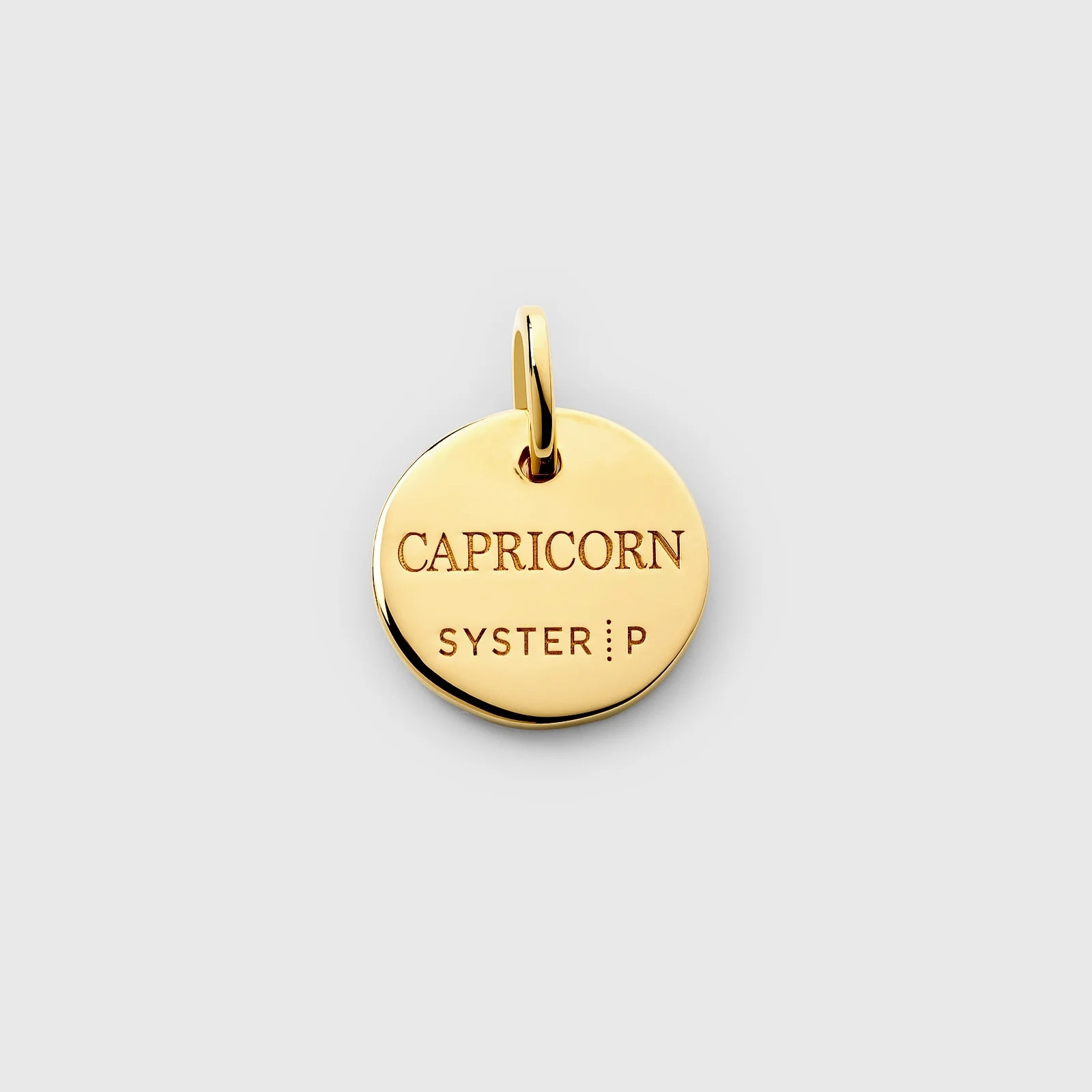 Beloved Zodie Pendant Gold är en stjärnteckensberlock handgjord i 925 sterlingsilver, 100% återvunnet, och pläterad med 18K guld. Berlocken har en stjärnteckenssymbol ingraverad på framsidan inramat av en vacker bård, och namnet på baksidan. En personlig detalj till ditt halsband – eller en omtänksam present.