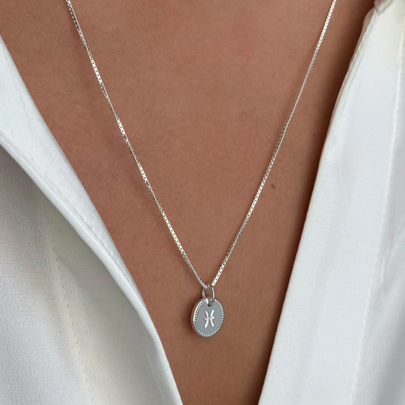 Beloved Zodie Pendant Gold är en stjärnteckensberlock handgjord i 925 sterlingsilver, 100% återvunnet. Berlocken har en stjärnteckenssymbol ingraverad på framsidan inramat av en vacker bård, och namnet på baksidan. En personlig detalj till ditt halsband – eller en omtänksam present.