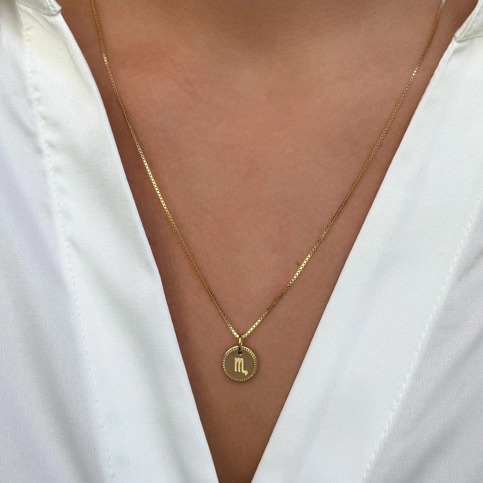 Beloved Zodie Pendant Gold är en stjärnteckensberlock handgjord i 925 sterlingsilver, 100% återvunnet, och pläterad med 18K guld. Berlocken har en stjärnteckenssymbol ingraverad på framsidan inramat av en vacker bård, och namnet på baksidan. En personlig detalj till ditt halsband – eller en omtänksam present.