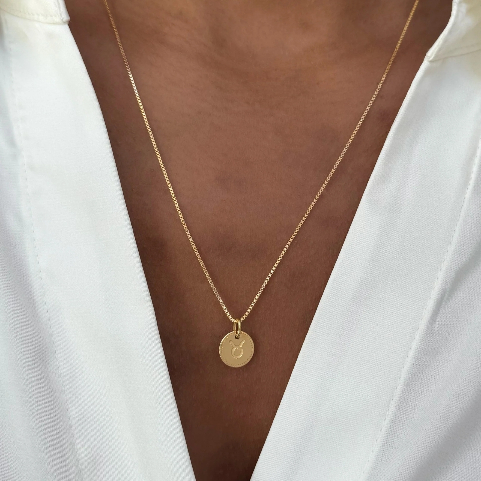 Beloved Zodie Pendant Gold är en stjärnteckensberlock handgjord i 925 sterlingsilver, 100% återvunnet, och pläterad med 18K guld. Berlocken har en stjärnteckenssymbol ingraverad på framsidan inramat av en vacker bård, och namnet på baksidan. En personlig detalj till ditt halsband – eller en omtänksam present.