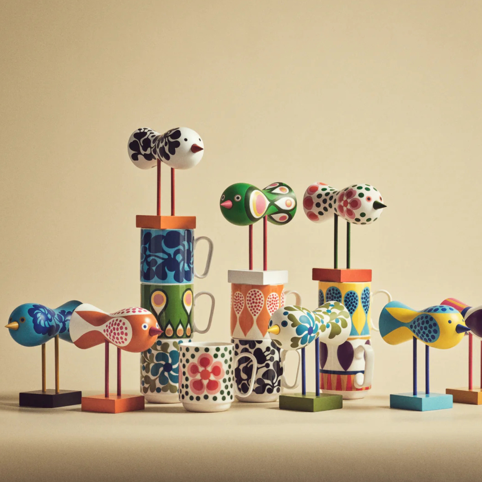 Hennes färgglada flock av fåglar föddes redan under det levande och livfulla 60-talet, en era när livlig musik exploderade och den unga Flower Power-generationen erövrade scenen. Lisa Larsons fåglar flyger nu fritt. Lisa Larsons fåglar är nästan som fredsduvor, en påminnelse om en tid när den unga generationen protesterade mot krig och drömde om ett nytt samhälle.
