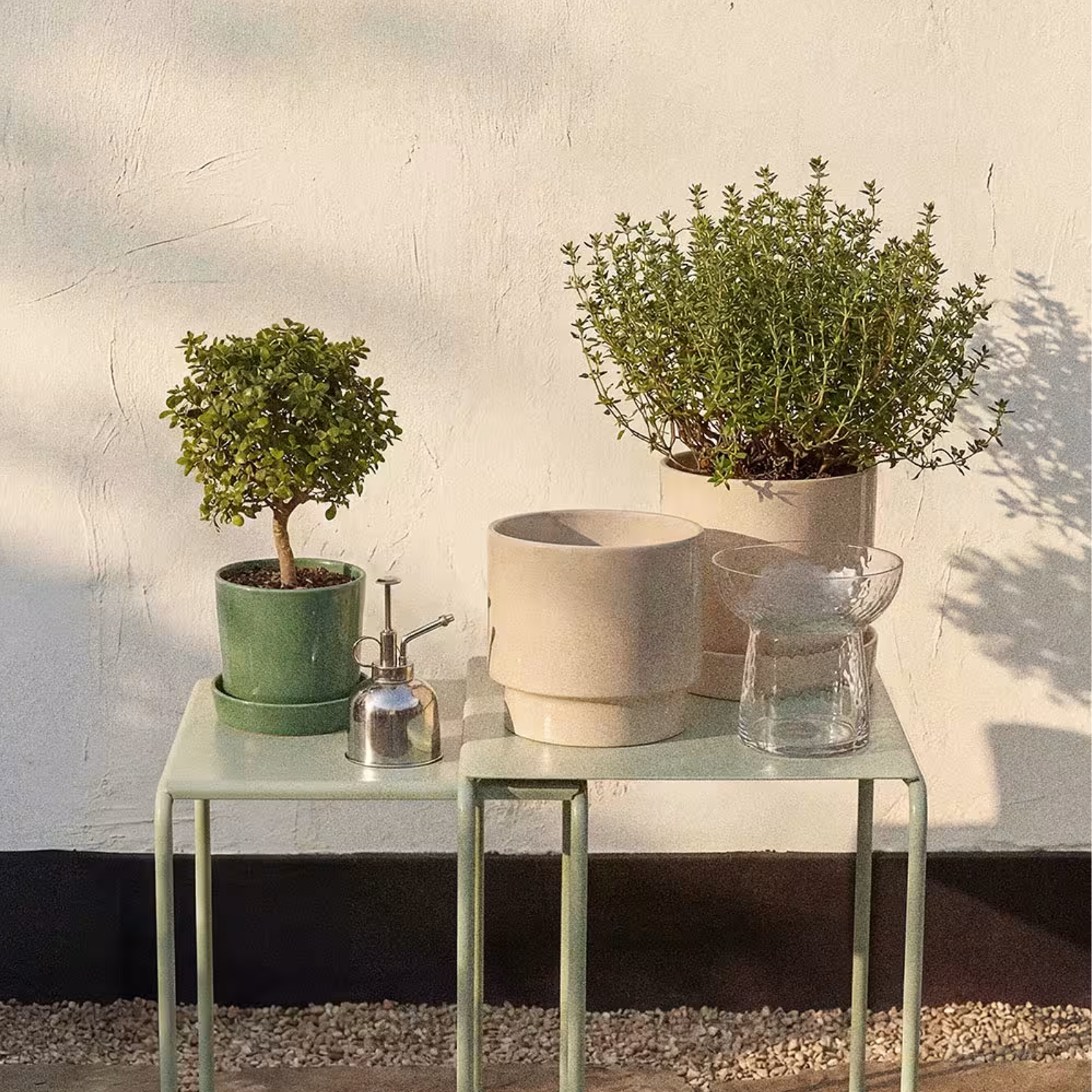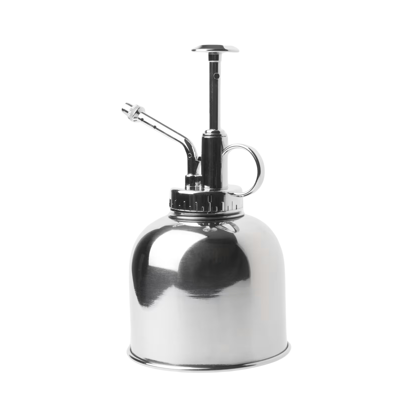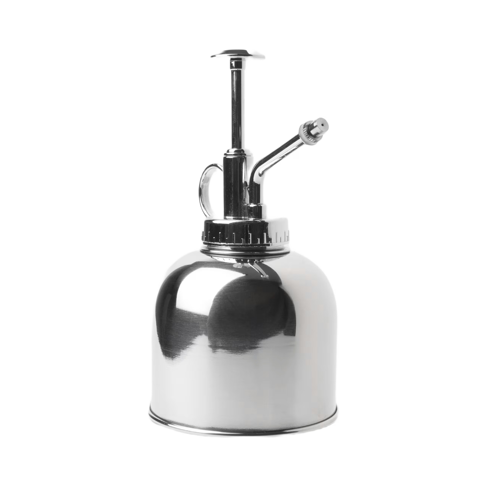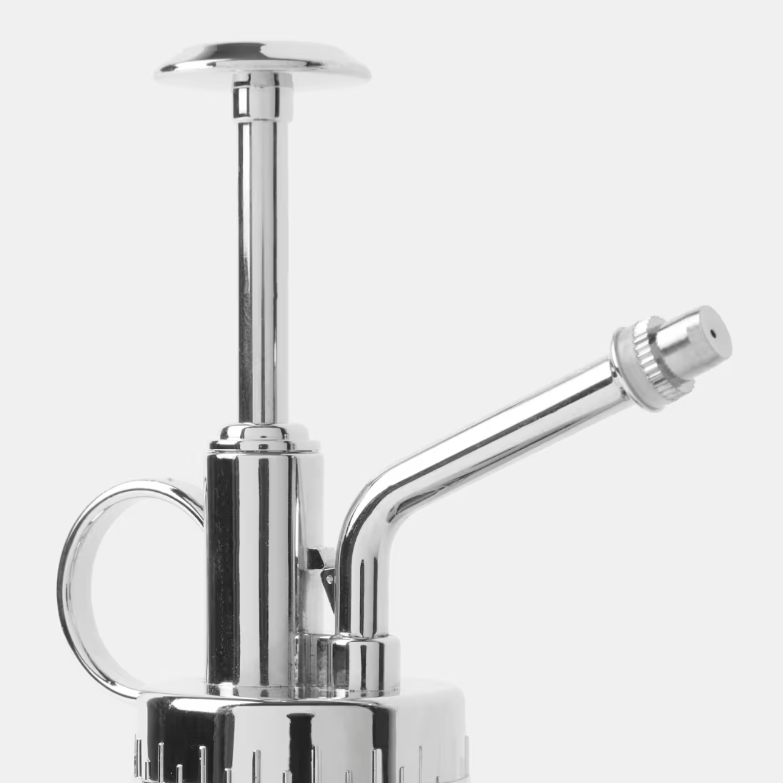 Blankpolerad blomspruta i rostfritt stål med presspump som håller växterna pigga.