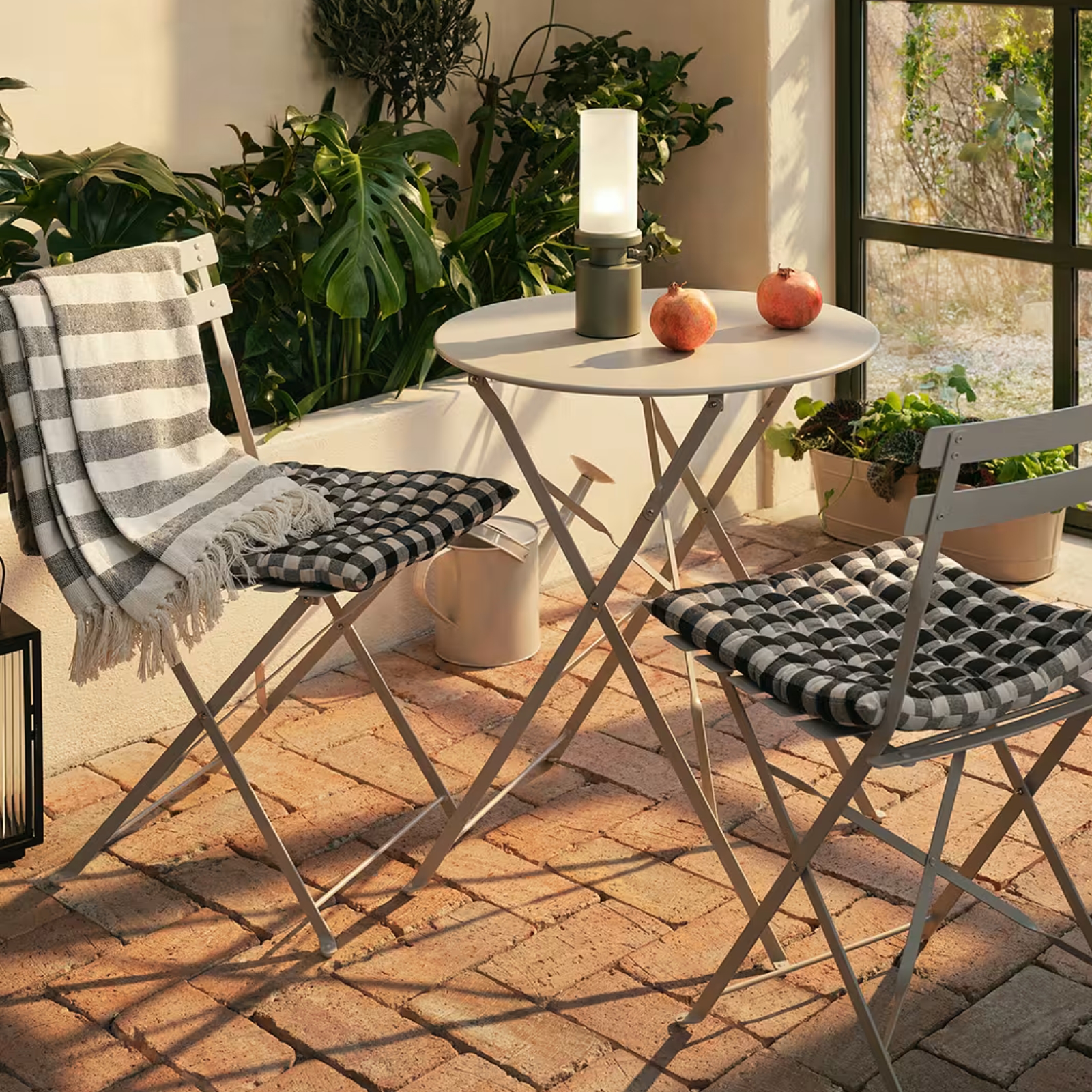Finns i olika färger och kan matchas med stolar och soffa i samma serie.• Stålbord för trädgård eller balkong