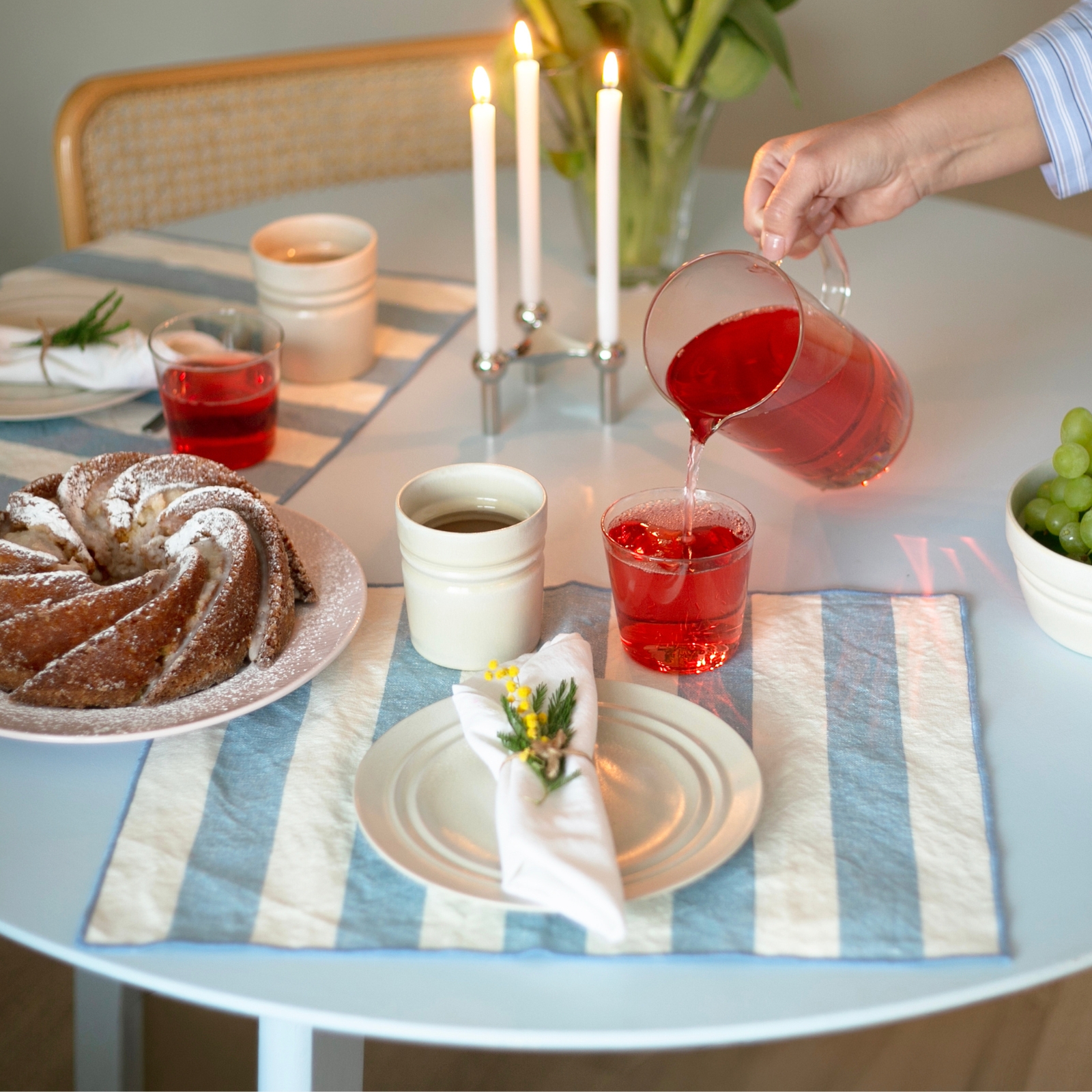 Skapa din egen unika dukning. Med vackert målad keramik i oräkneliga kombinationer, tunna glas och textiler med lekfulla detaljer – som volanger, klassiska ränder och broderade kanter. En kreativ färginjektion, som för tankarna till stora middagar i skuggan under citronträden.