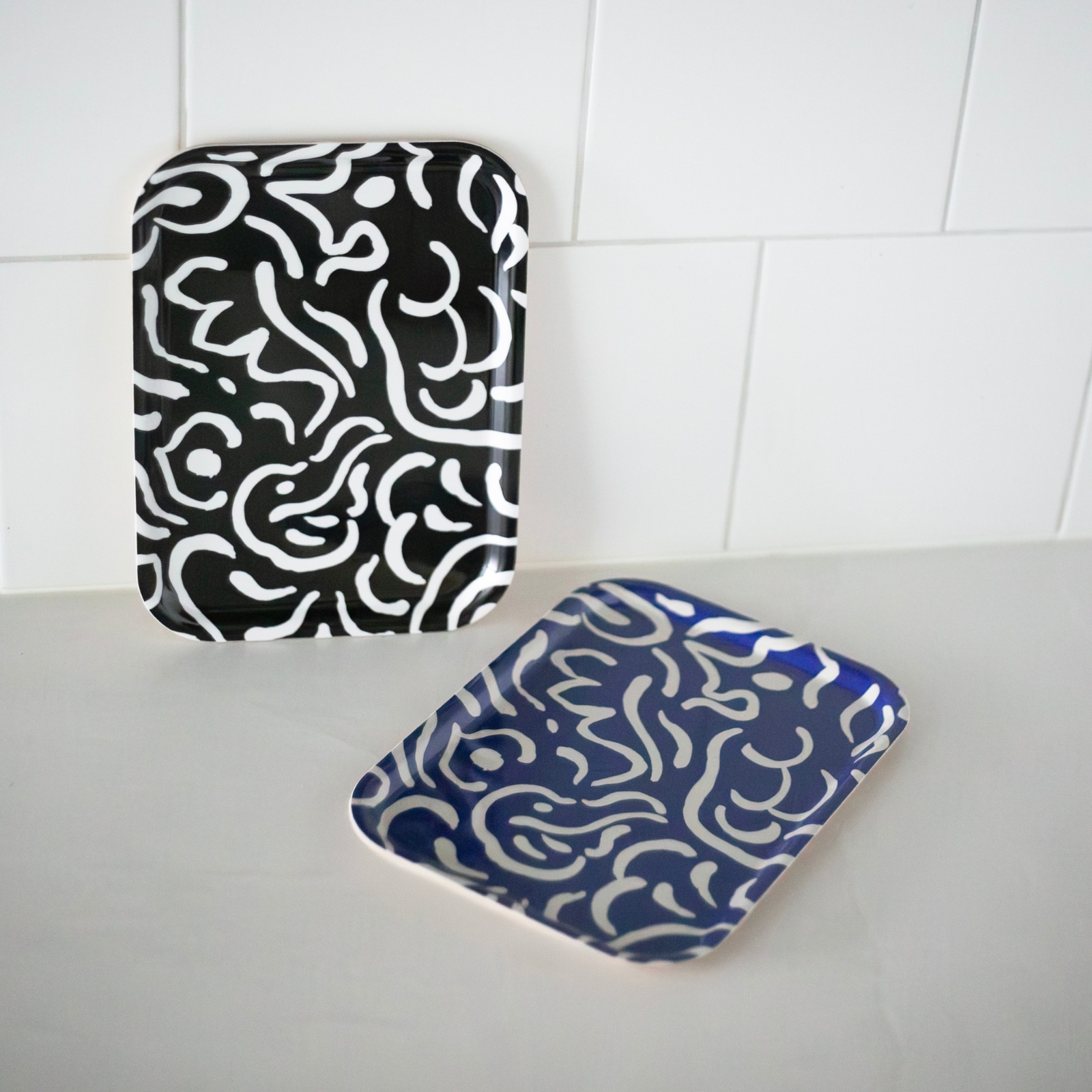 Låt färg och form ta plats på bordet! Brickan Virvla bjuder på ett härligt mönster som både flirtar med 50-talet, 80-talet och framtiden. Ett lekfullt virrvarr av linjer och färger och storleken är perfekt för frukostmackan eller en fika på balkongen