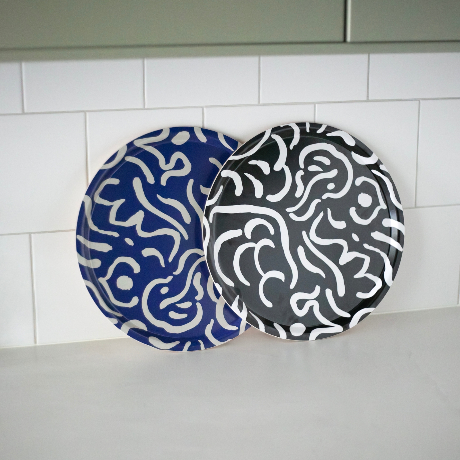 Låt färg och form ta plats på bordet! Brickan Virvla bjuder på ett härligt mönster som både flirtar med 50-talet, 80-talet och framtiden. Ett lekfullt virrvarr av linjer och färger som sätter guldkant på både frukostbrickan och fikastunden.