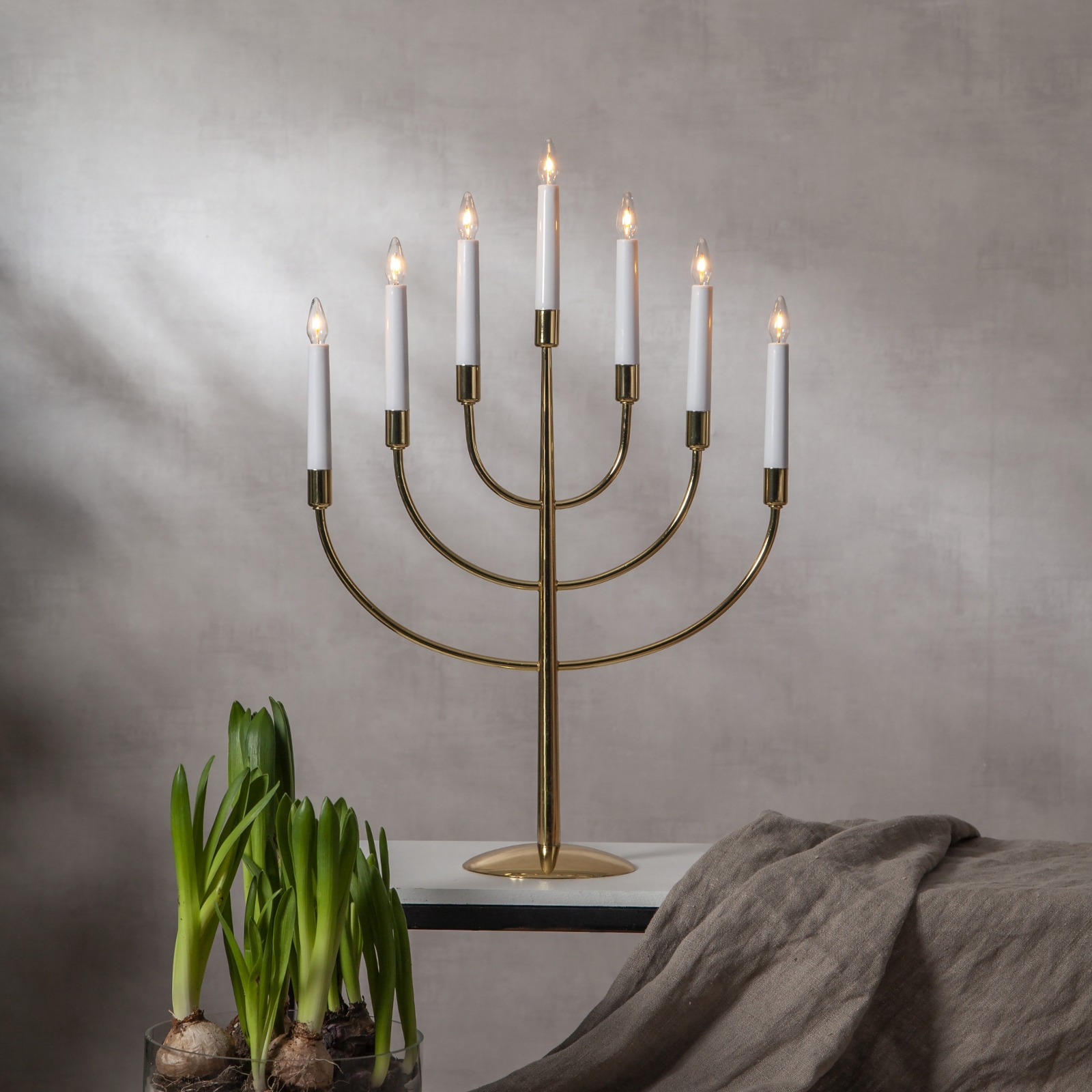 Skapa en stämningsfull jul med adventsljusstaken Titus i metall. Med sina 7 ljuskällor och mjuka soft glow-effekt sprider den ett varmt och behagligt sken som lyser upp hemmet under advent och jul. Den stilrena designen gör Titus till en tidlös juldekoration som passar lika bra i moderna hem som i klassiska miljöer. Tack vare den senaste ljuskällan får du ett jämnt och mjukt ljus som förhöjer julstämningen kväll efter kväll.