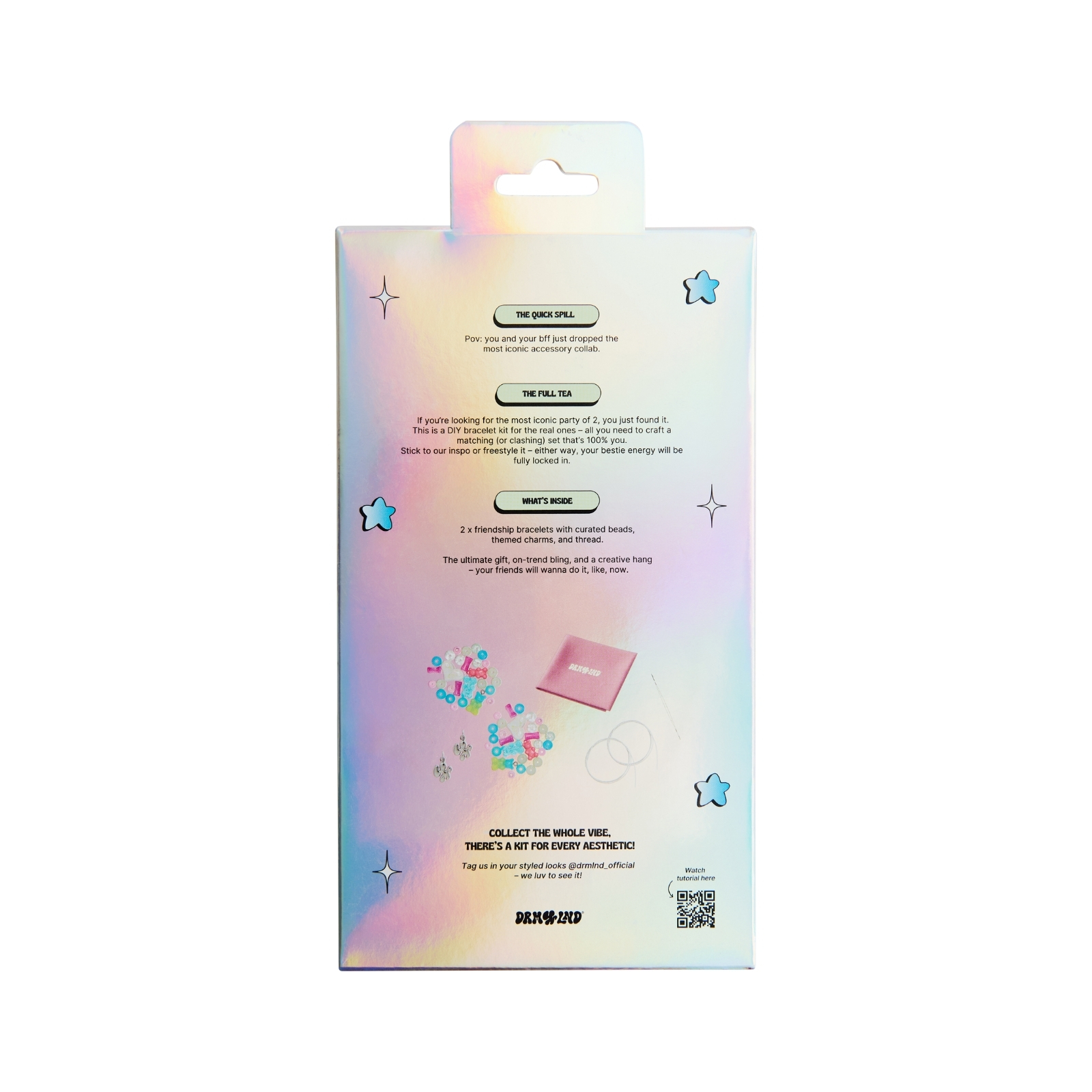 Två armband – ett till dig och ett till din bästis. Med DRM-LND:s kreativa armbandskit skapar du enkelt ett personligt set tillsammans med någon du tycker om. Varje kit innehåller två armband att designa och dela, och finns i fem olika stilar att samla på, från sött och pastelligt till färgstarkt och lekfullt.