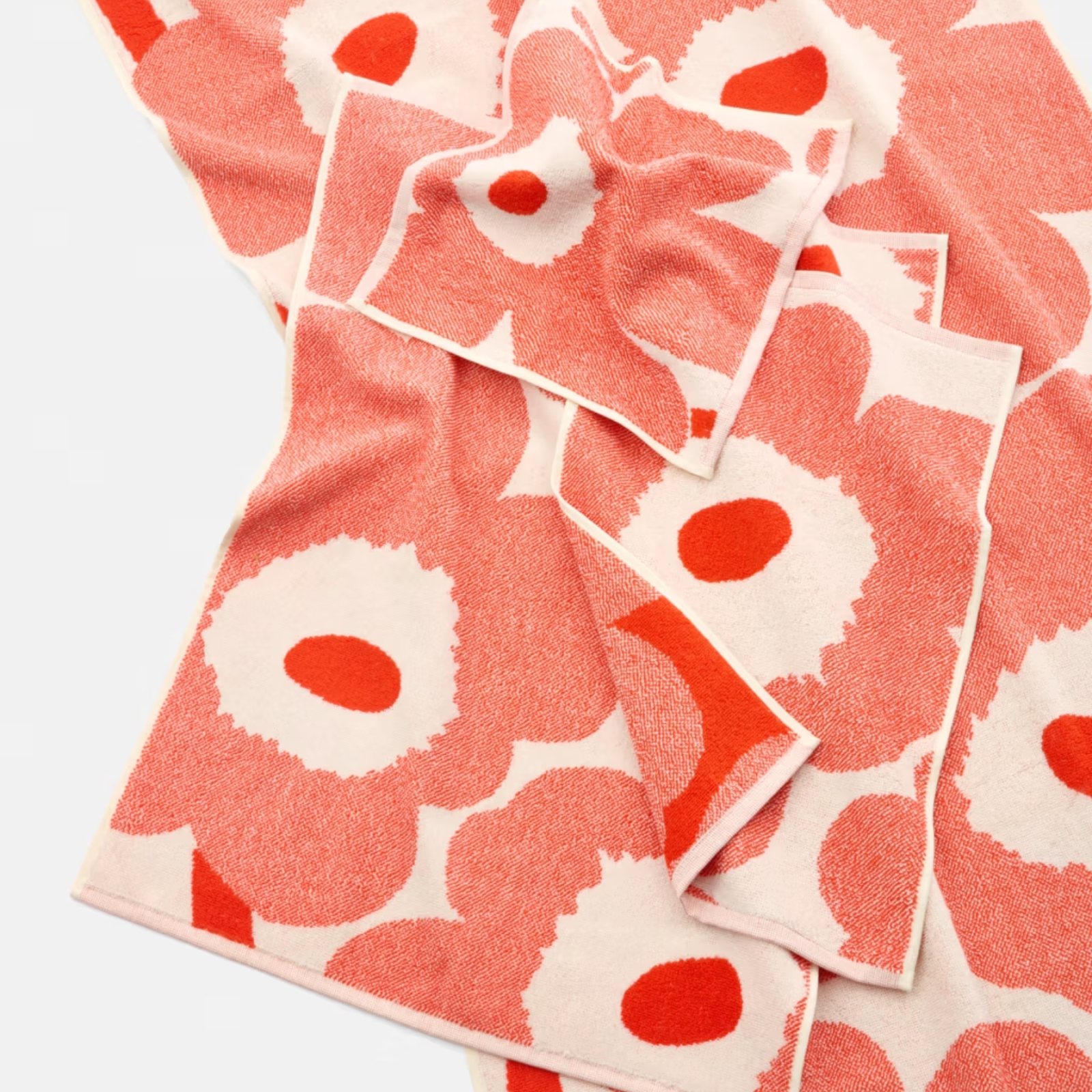 Gästhandduken med det ikoniska Unikko-mönstret ger badrummet ett lekfullt men tidlöst uttryck. Handduken är tillverkad i mjuk frotté av 100 procent ekologisk bomull och känns skön mot huden, perfekt när du vill ge både dig själv och dina gäster det där lilla extra.