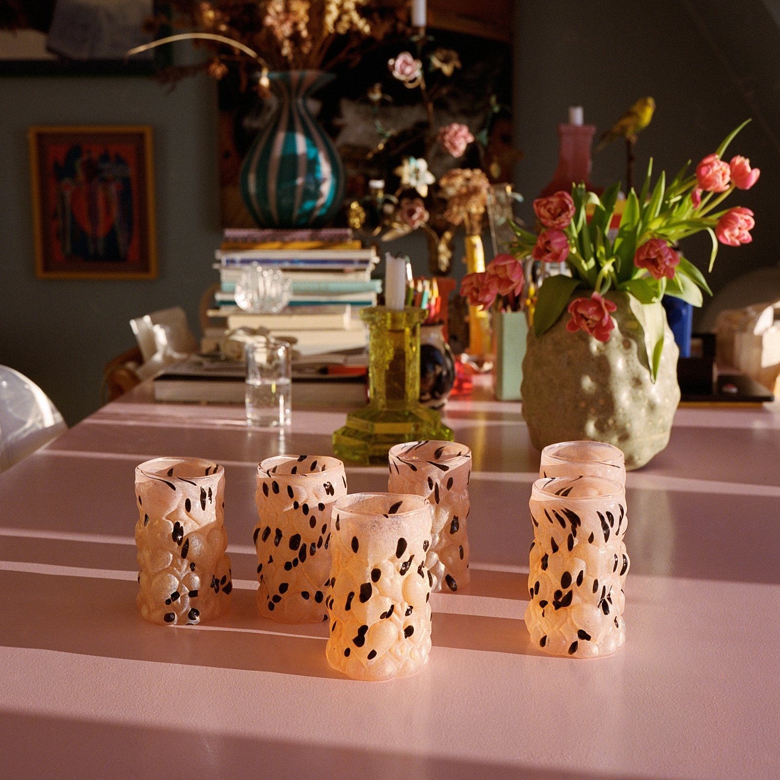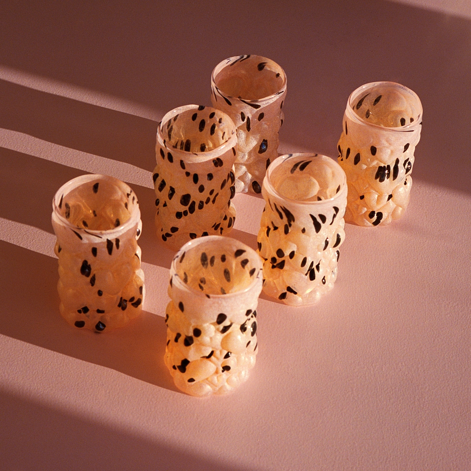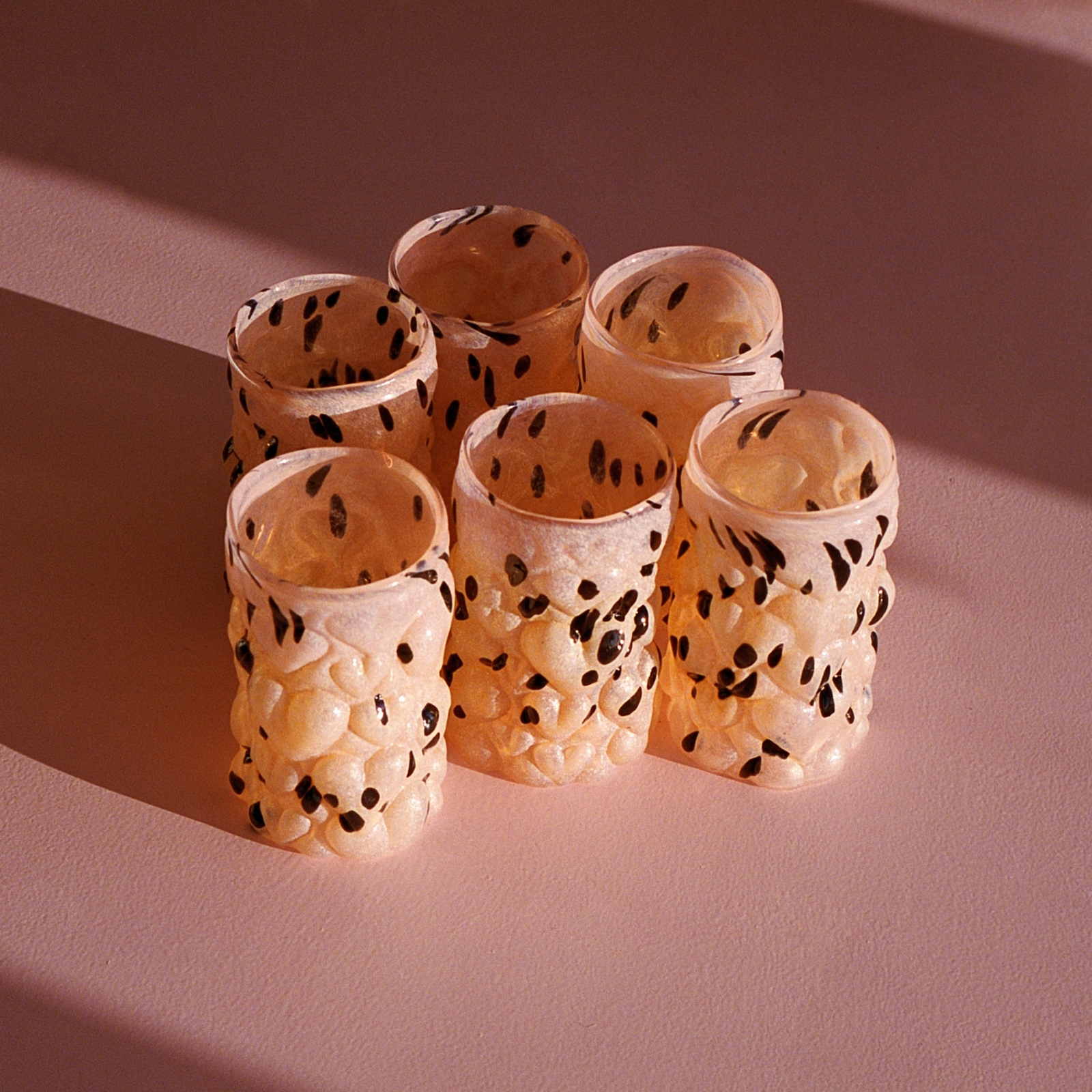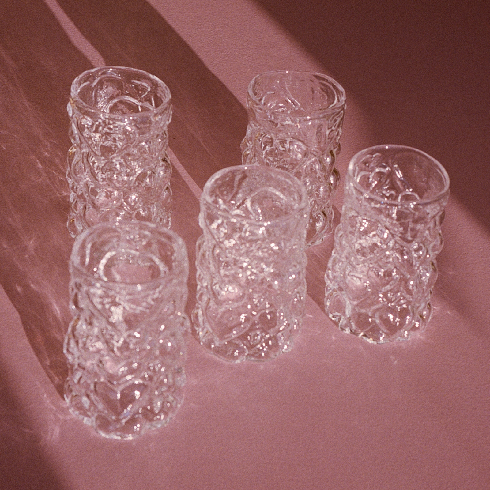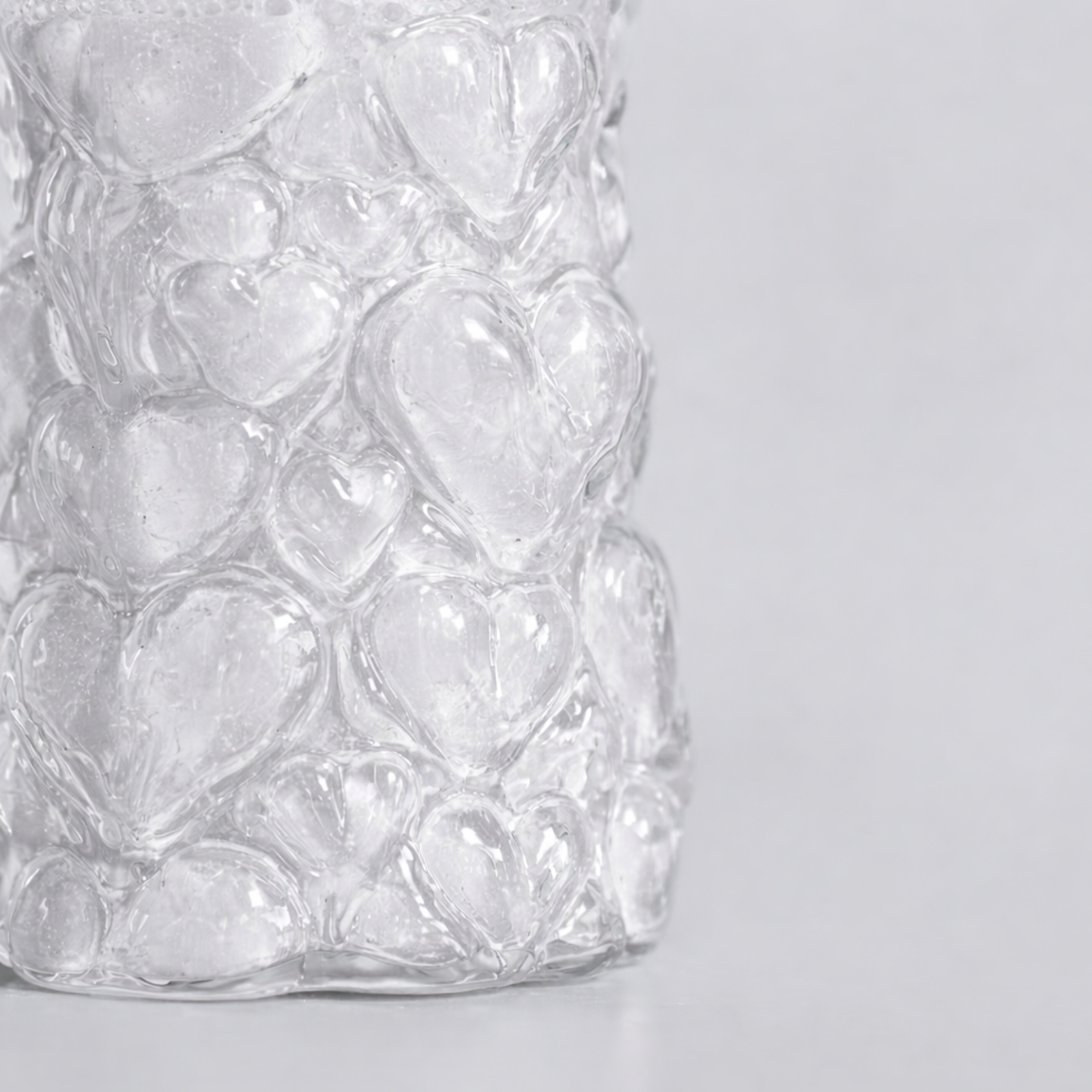Formgivet och blåst av Hanna Hansdotter själv i hyttan på The Glass Factory i Boda Glasbruk, är varje glas ett unikt uttryck för hennes karakteristiska stil. Här möts det barocka och det lekfulla i ett formspråk som vågar ta plats, med bulliga hjärtan som både syns och känns.