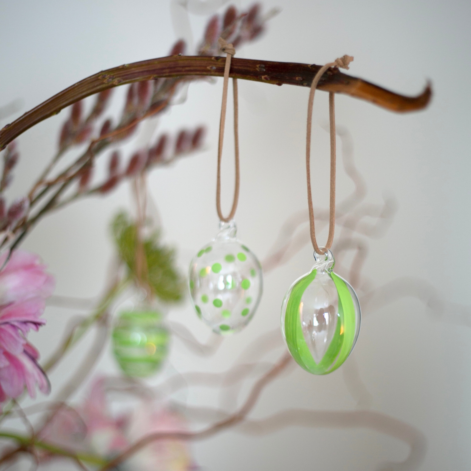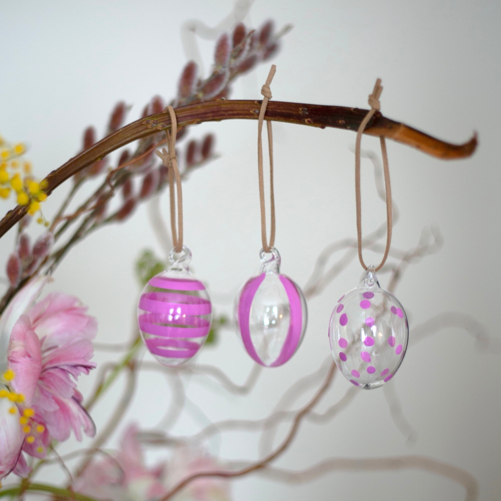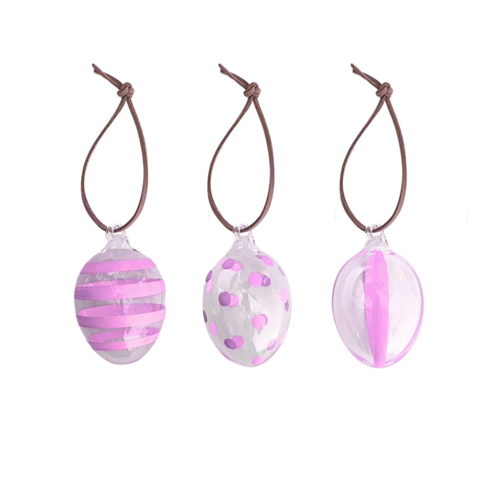 Härliga handmålade glasägg i 3-pack från Created by Designtorget – en vacker detalj som lyfter din påskdekoration! De lekfulla ränderna och prickarna ger en charmig och elegant känsla, oavsett om du hänger dem i påskriset eller låter dem pryda bordet. Finns i flera färger – mixa och matcha för en personlig touch!