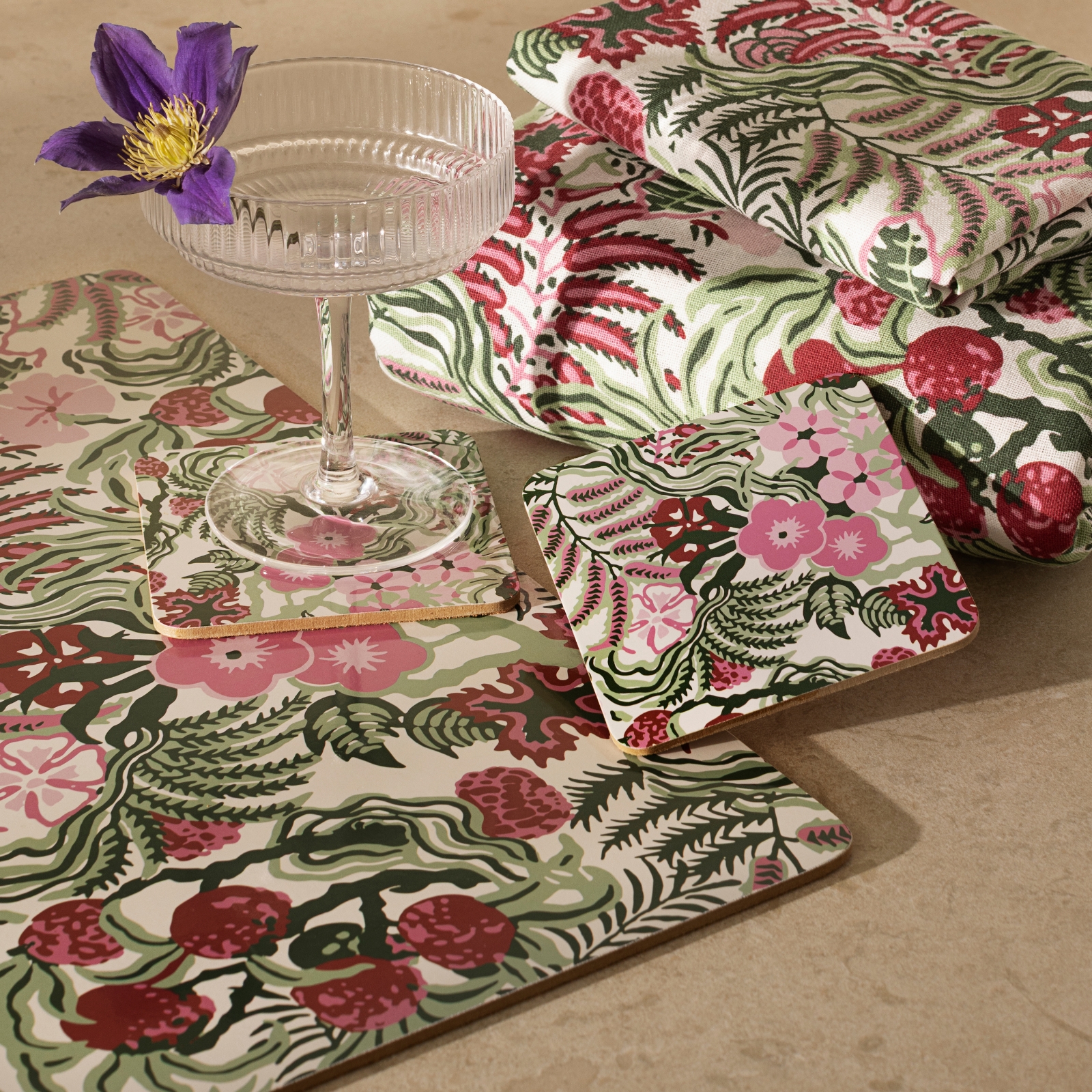 Kan matchas med bordstablett i samma mönster.• Glasunderlägg i kork och MDF