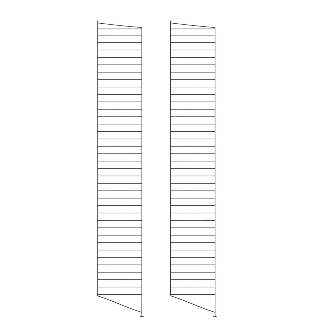 Golvgavlar finns i tre höjder, 85 cm, 115 cm, 200 cm, samt ett djup, 30 cm. Gavlarna är basen för att bygga din stringhylla. Därefter kan du addera produkter från String System förutsatt att de har 30 cm djup. Välj mellan en rad olika produkter så som hyllplan, skåp, lådhurtsar och tidskriftshyllor. Golvgaveln vilar mot golvet med sin fot vilket gör den väldigt stabil men samtidigt ger en lätt och luftig känsla. För att göra din hylla ännu mer funktionell och unik kan du komplettera med organizers, knivblock eller en tidskriftssamlare som hängs på gaveln. Golvgavlarna säljs i både 1-pack och 2-pack.