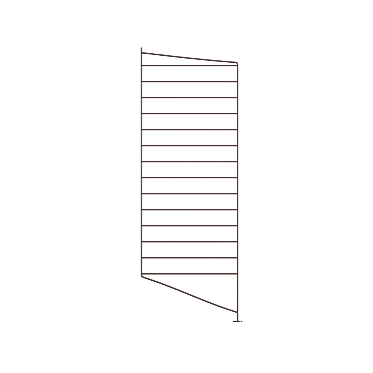 Golvgavlar finns i tre höjder, 85 cm, 115 cm, 200 cm, samt ett djup, 30 cm. Gavlarna är basen för att bygga din stringhylla. Därefter kan du addera produkter från String System förutsatt att de har 30 cm djup. Välj mellan en rad olika produkter så som hyllplan, skåp, lådhurtsar och tidskriftshyllor. Golvgaveln vilar mot golvet med sin fot vilket gör den väldigt stabil men samtidigt ger en lätt och luftig känsla. För att göra din hylla ännu mer funktionell och unik kan du komplettera med organizers, knivblock eller en tidskriftssamlare som hängs på gaveln. Golvgavlarna säljs i både 1-pack och 2-pack.