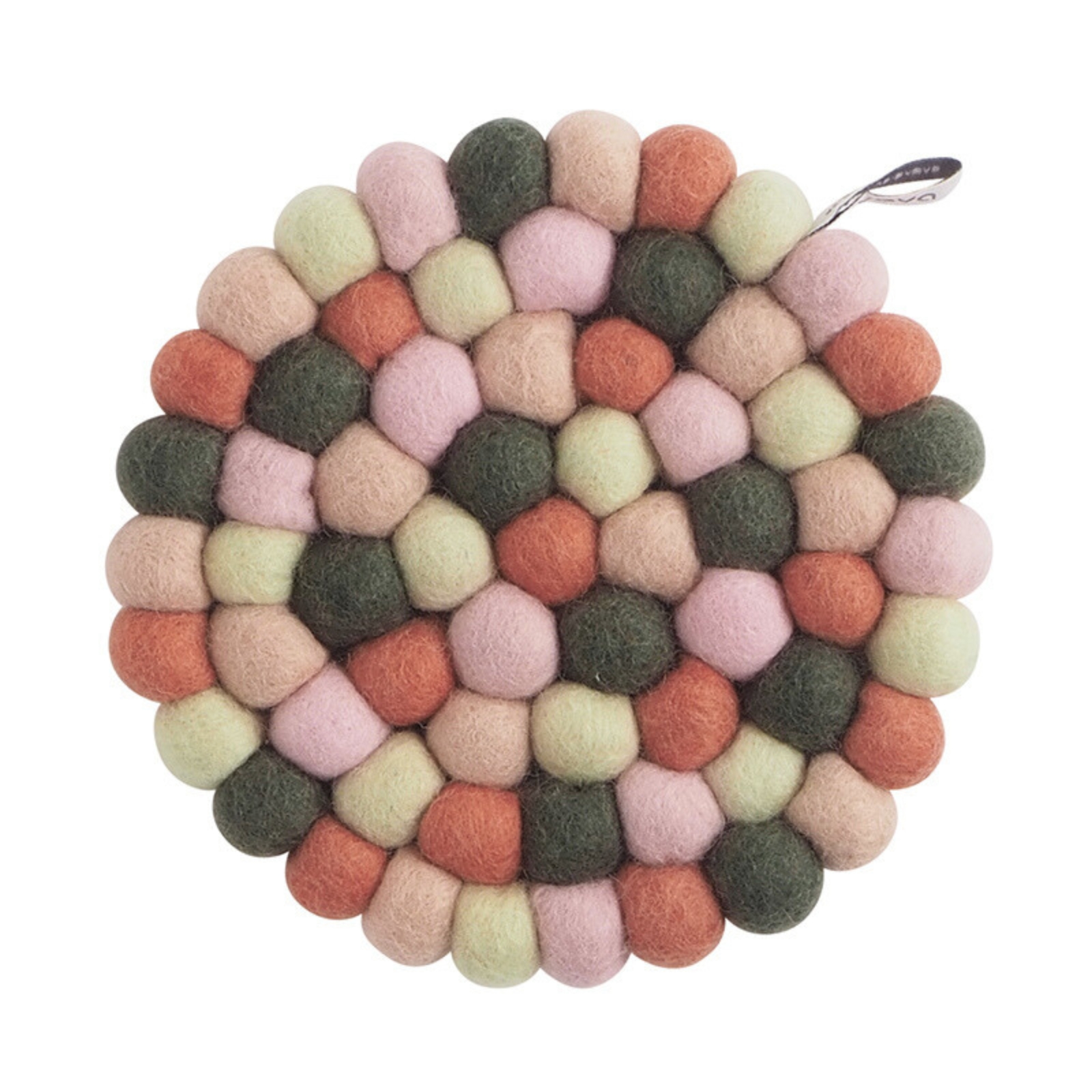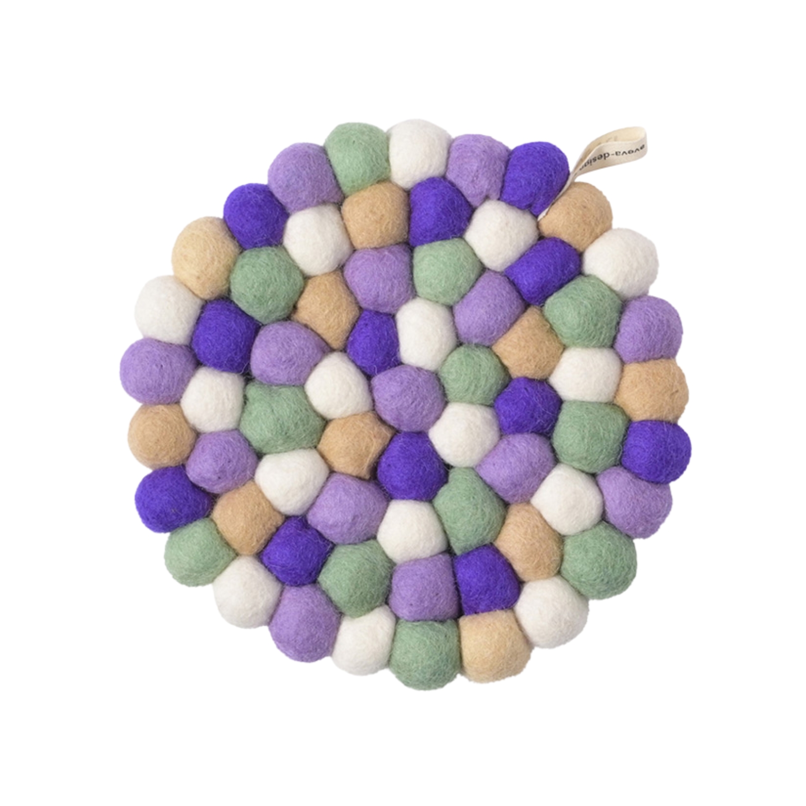 Ett handgjort grytunderlägg i 100% ull som kombinerar funktion och färg på ett lekfullt sätt. Den naturliga ullen är både värmetålig och smutsavvisande, vilket gör underlägget perfekt för köket – samtidigt som det blir en fin detalj i din inredning.