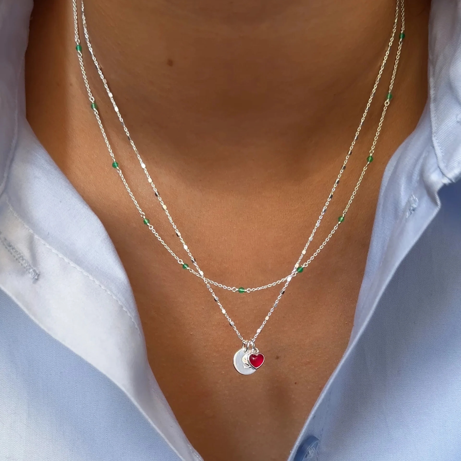 Den perfekta färgklicken för alla tillfällen. Halsbandet fångar uppmärksamheten med sina vackra gröna onyx-stenar och ger varje look det där lilla extra! Tillverkat i 100% återvunnet sterlingsilver/pläterat med 18K guld. Perfekt att kombinera med ett matchande armband för en komplett look. Garanterat en uppskattad present för den som gillar färg.