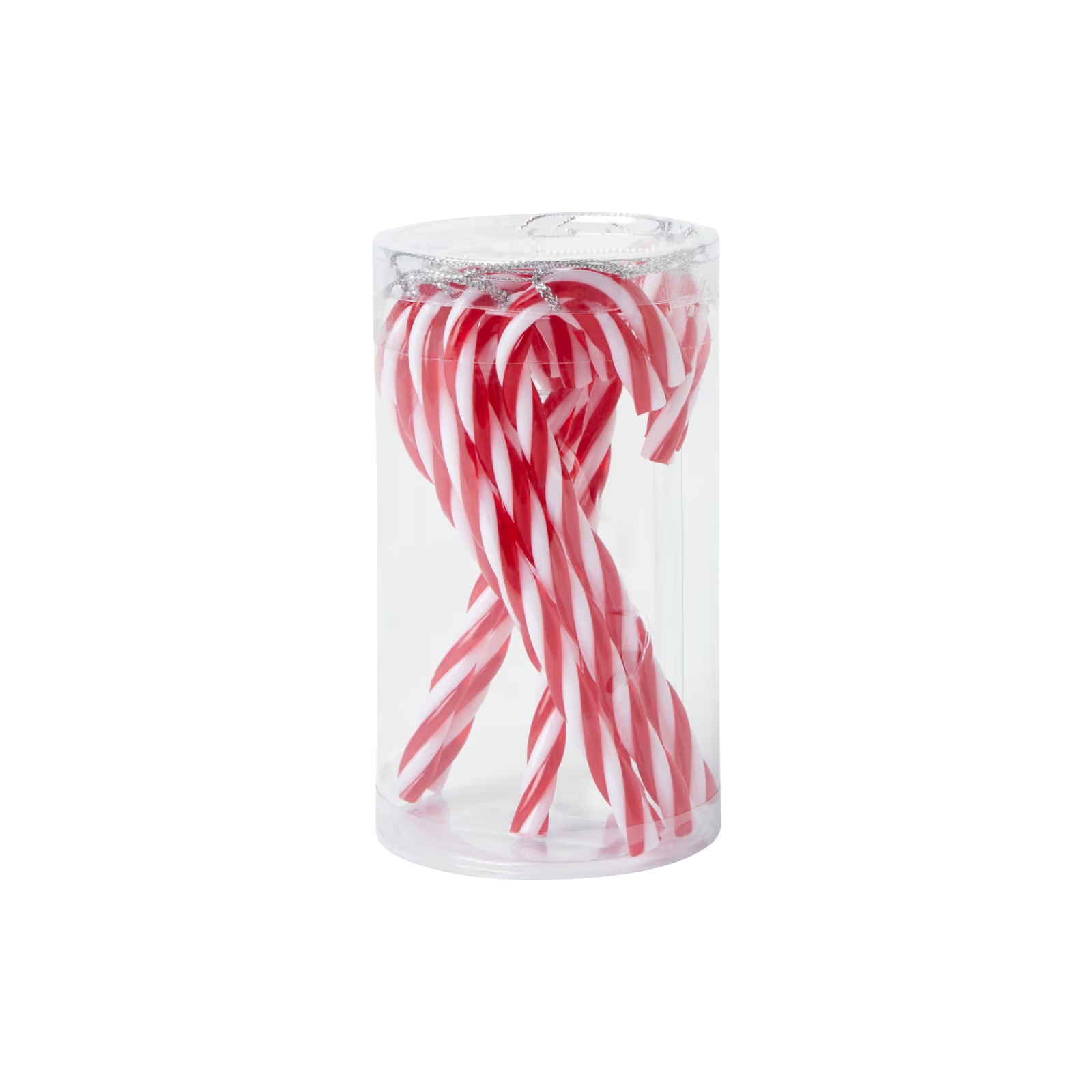 Set med tio st julgransdekorationer i form av klassiska polkagrisstänger.