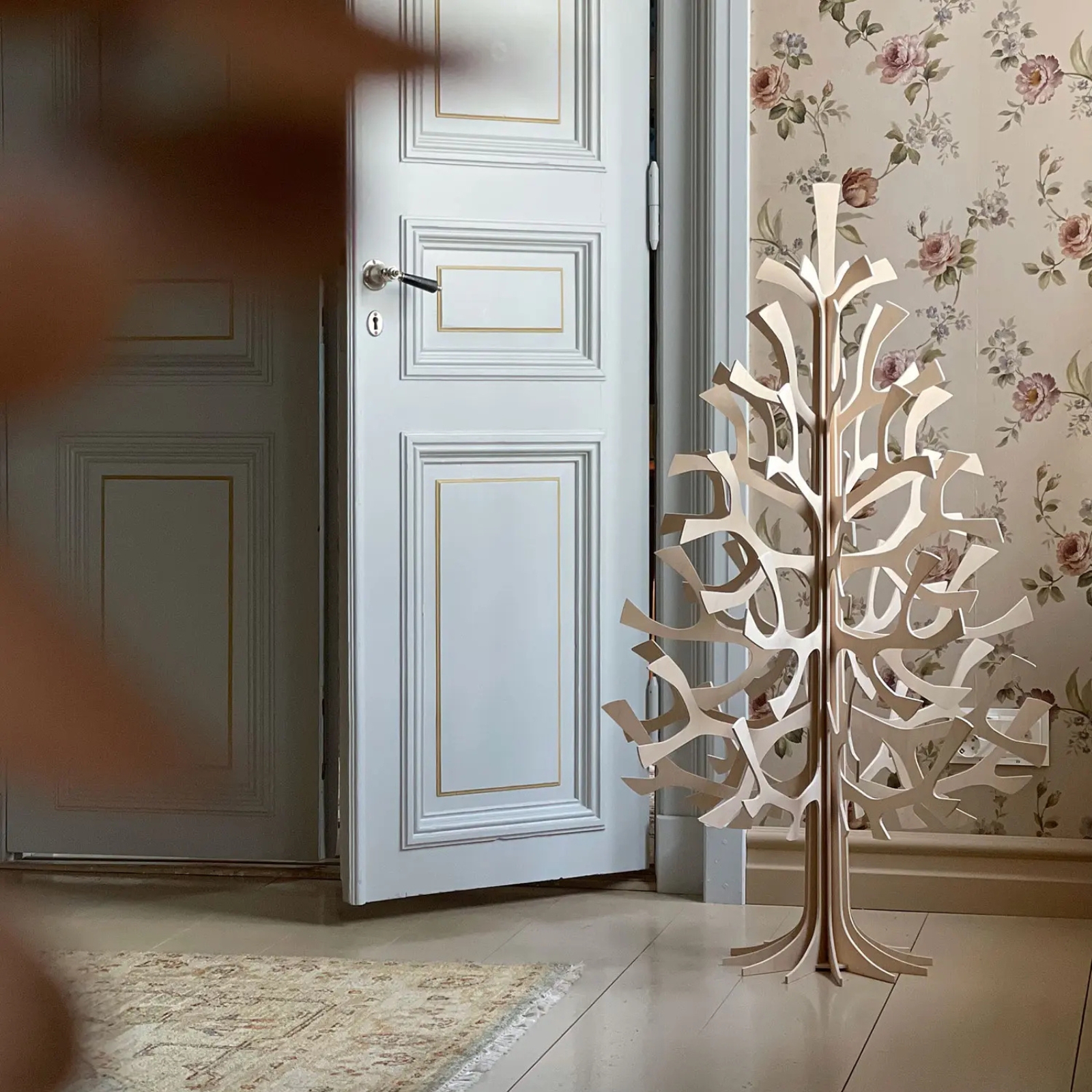 Lovi Gran 120 cm skapar julstämning i ditt hem. Beundra den vackra formen på denna träjulgran och de graciösa bågarna på dess grenar, perfekta för att visa upp dina favoritdekorationer. Tillverkad av naturlig, högkvalitativ finsk björkfaner, ger denna gran en lugn och fridfull atmosfär i ditt hem.