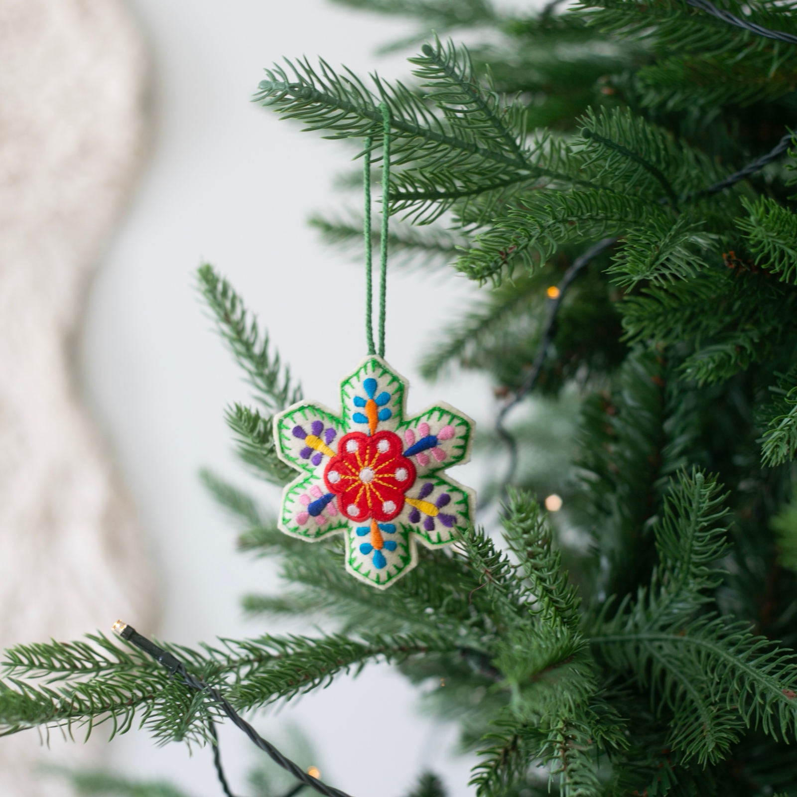 Broderade hängen i mjuk filt som sprider julstämning vart du än hänger dem. De är lika fina i granen som i fönstret eller på väggen, små detaljer som gör stor skillnad i vintermörkret.