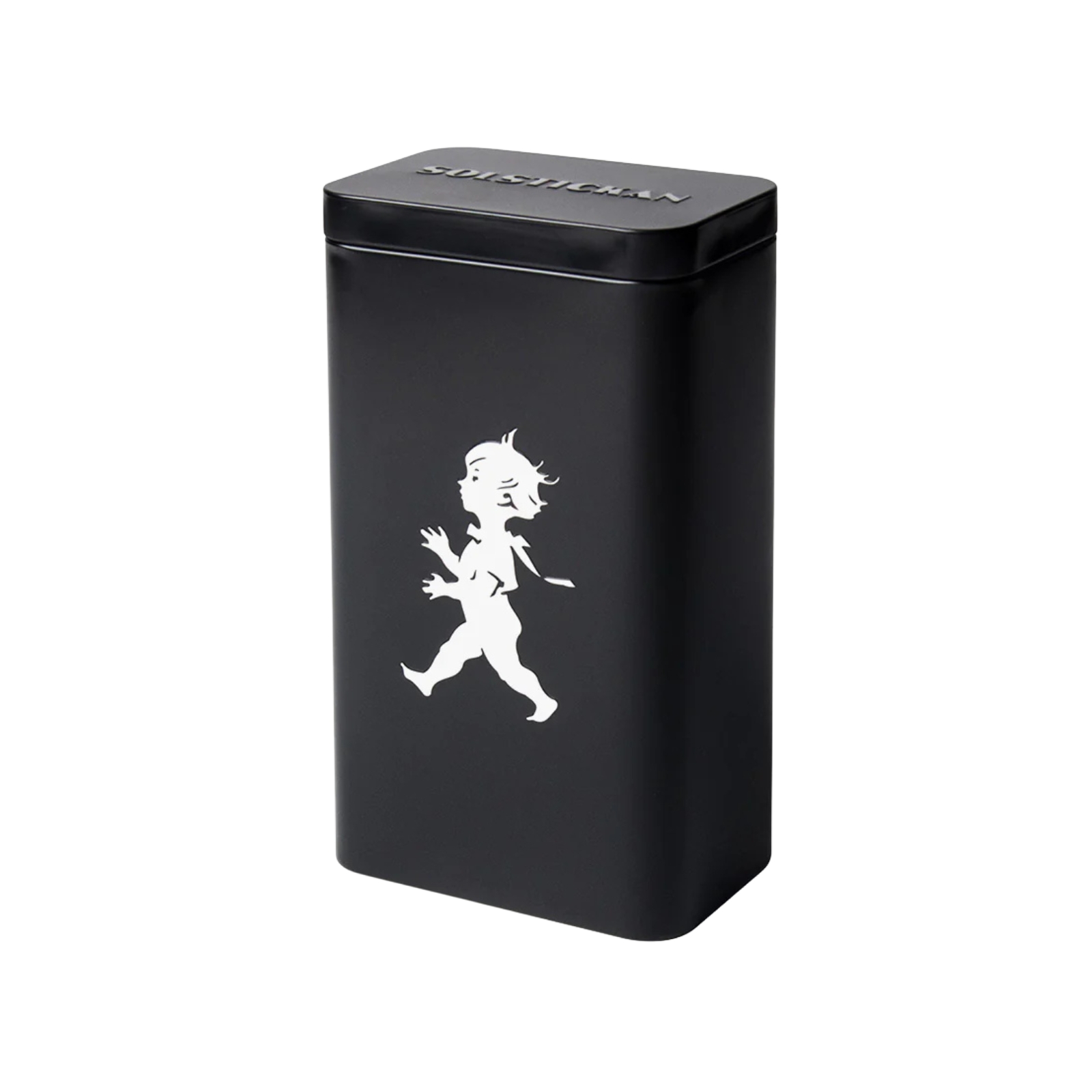 Kaffeburk i plåt med den klassiska Solstickepojken präglad på både fram- och baksida. Storleken passar de vanligaste rektangulära kaffepaketen i Sverige.