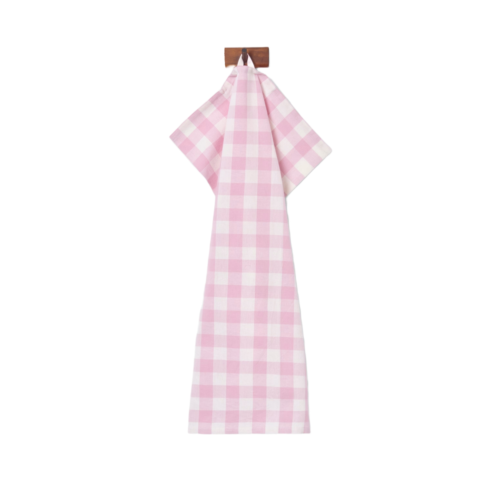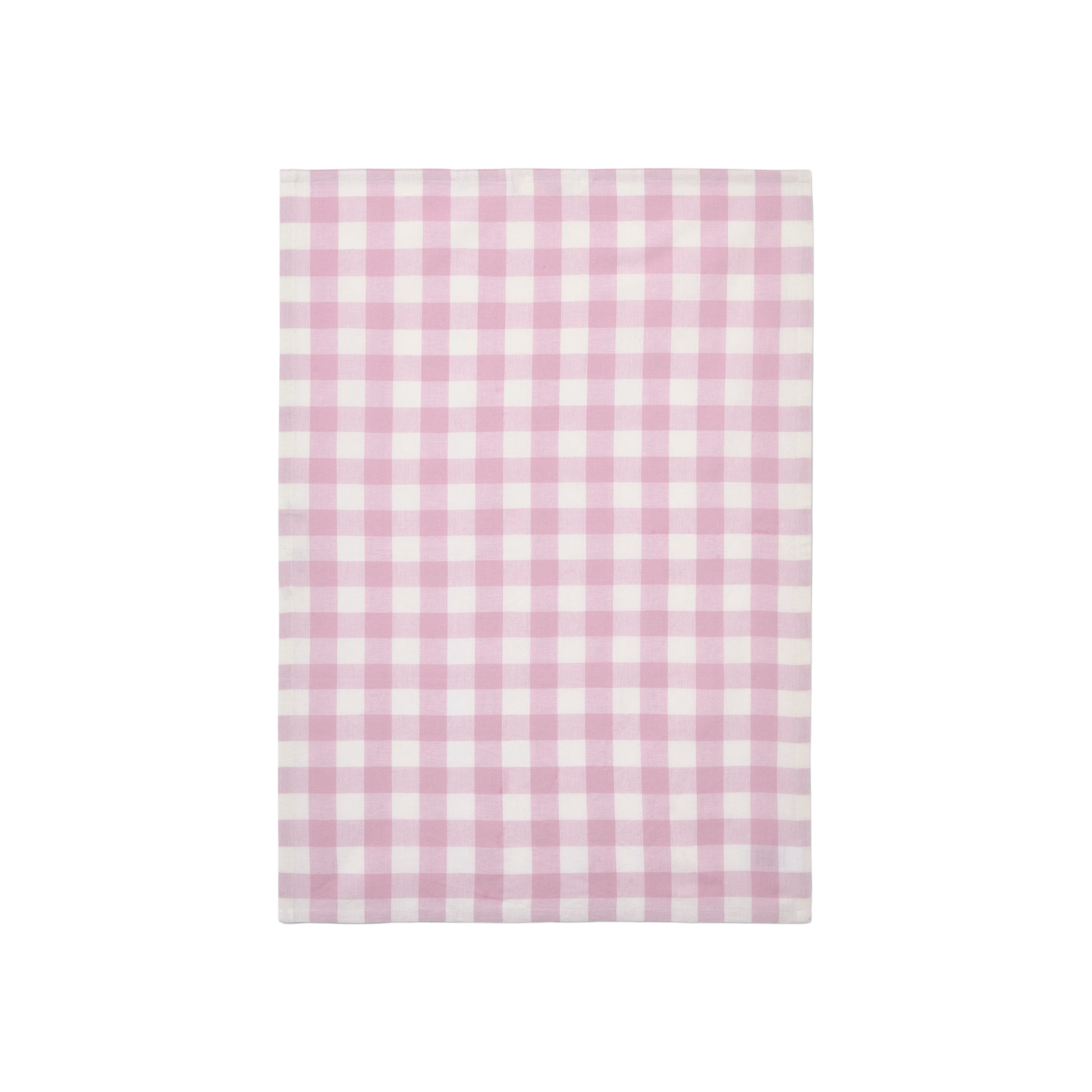 Rutig kökshandduk med två öglor för upphängning, en på kortsidan och en på långsidan.