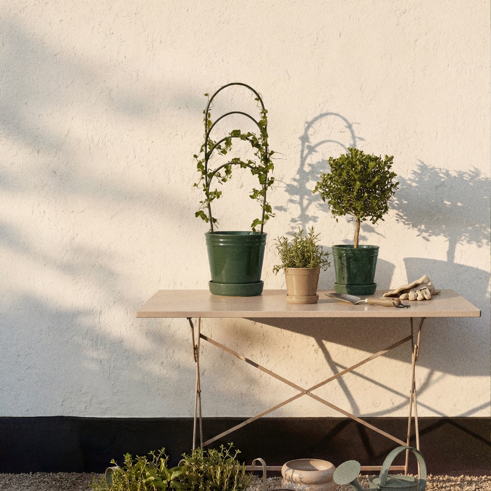 Krukan har en glaserad insida och dräneringshål i botten.