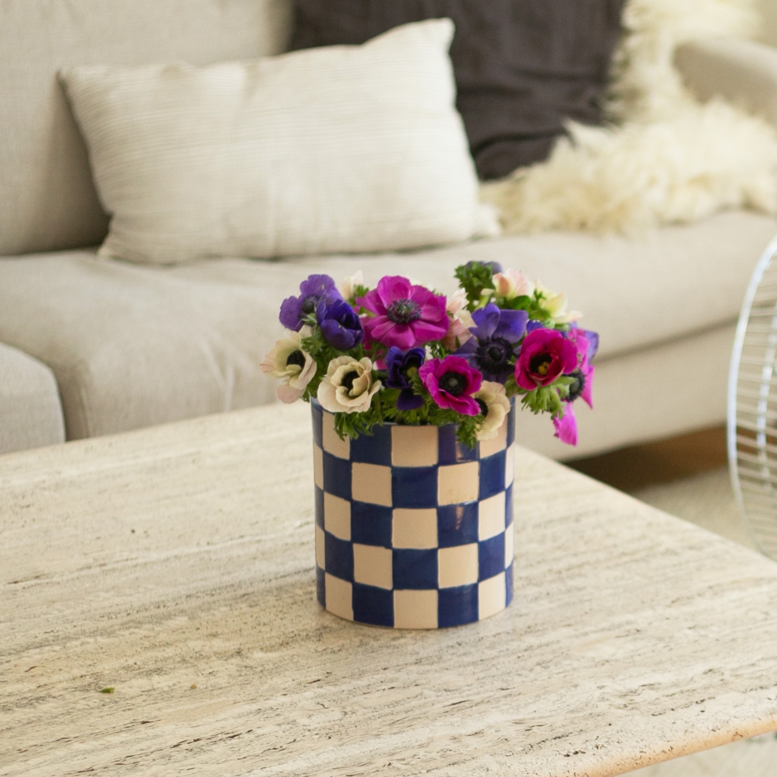 Kruka med rutmönster som påminner om ett schackbräde. För dig som vill få gröna fingrar eller ge bort en unik kruka till någon i present är denna kruka den ultimata gåvan att ge bort. Kommer i olika färger.