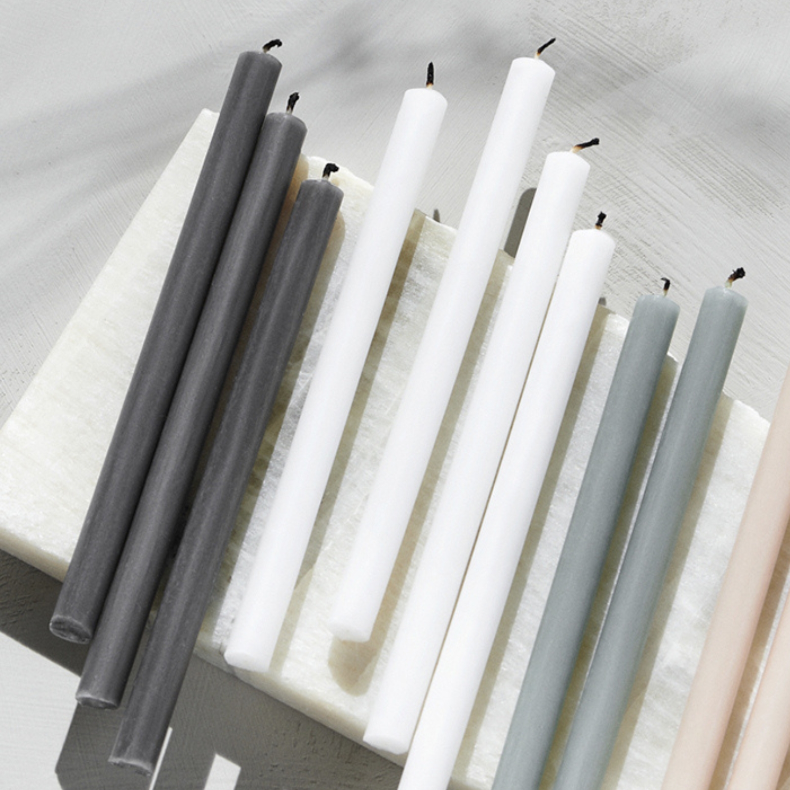 Dessa ljus passar perfekt tillsammans med STOFF Nagel-ljusstakarna. De är tillverkade av paraffin, ett rent mineralbaserat material som har rensats från orenheter. Paraffin har dessutom det lägsta koldioxidavtrycket och minst miljöpåverkan av alla vaxsorter. Vekarna är gjorda av 100 % bomull, vilket påverkar inomhusluften mindre än traditionella vekar då färre partiklar släpps ut.