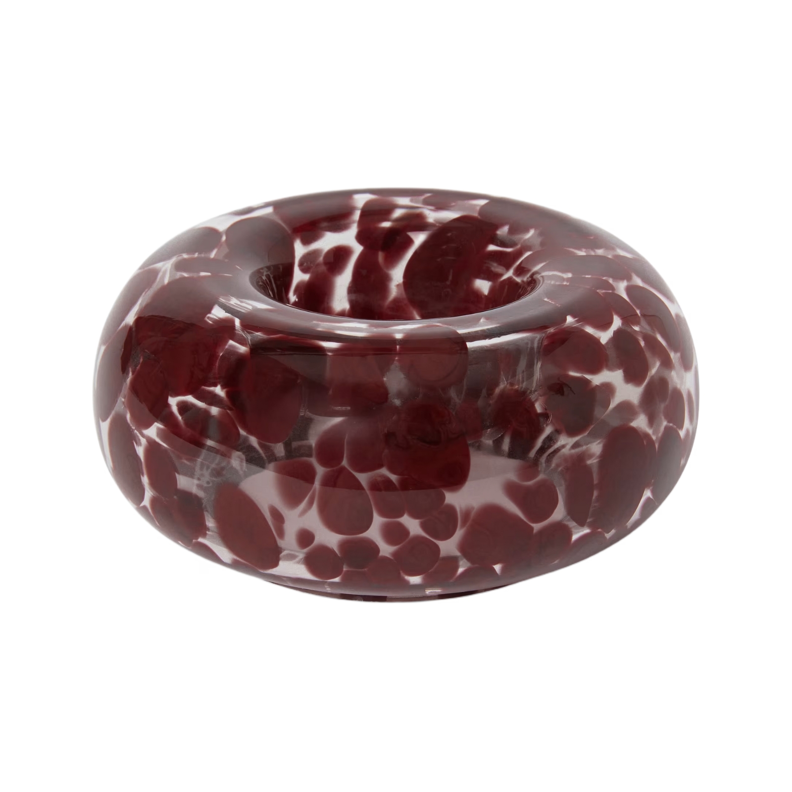 Ljushållare för värmeljus, tillverkad i glas med en spräcklig yta.