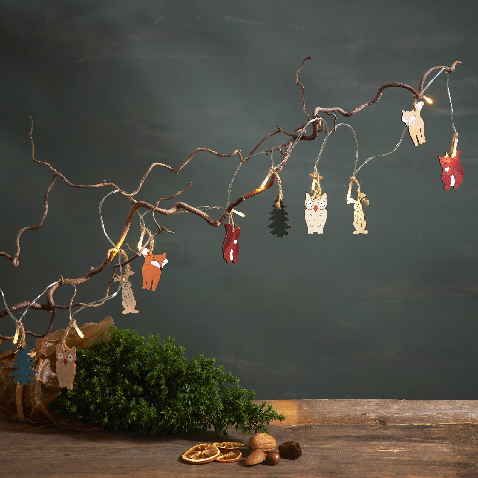 Ljusslingan sprider ett mjukt och mysigt sken som blir en fin detalj i barnrummet, vardagsrummet eller som dekoration till jul och fest. Den är dessutom perfekt att matcha med andra produkter i Forest Friends-serien, vilket gör det enkelt att skapa en enhetlig och stämningsfull inredning.