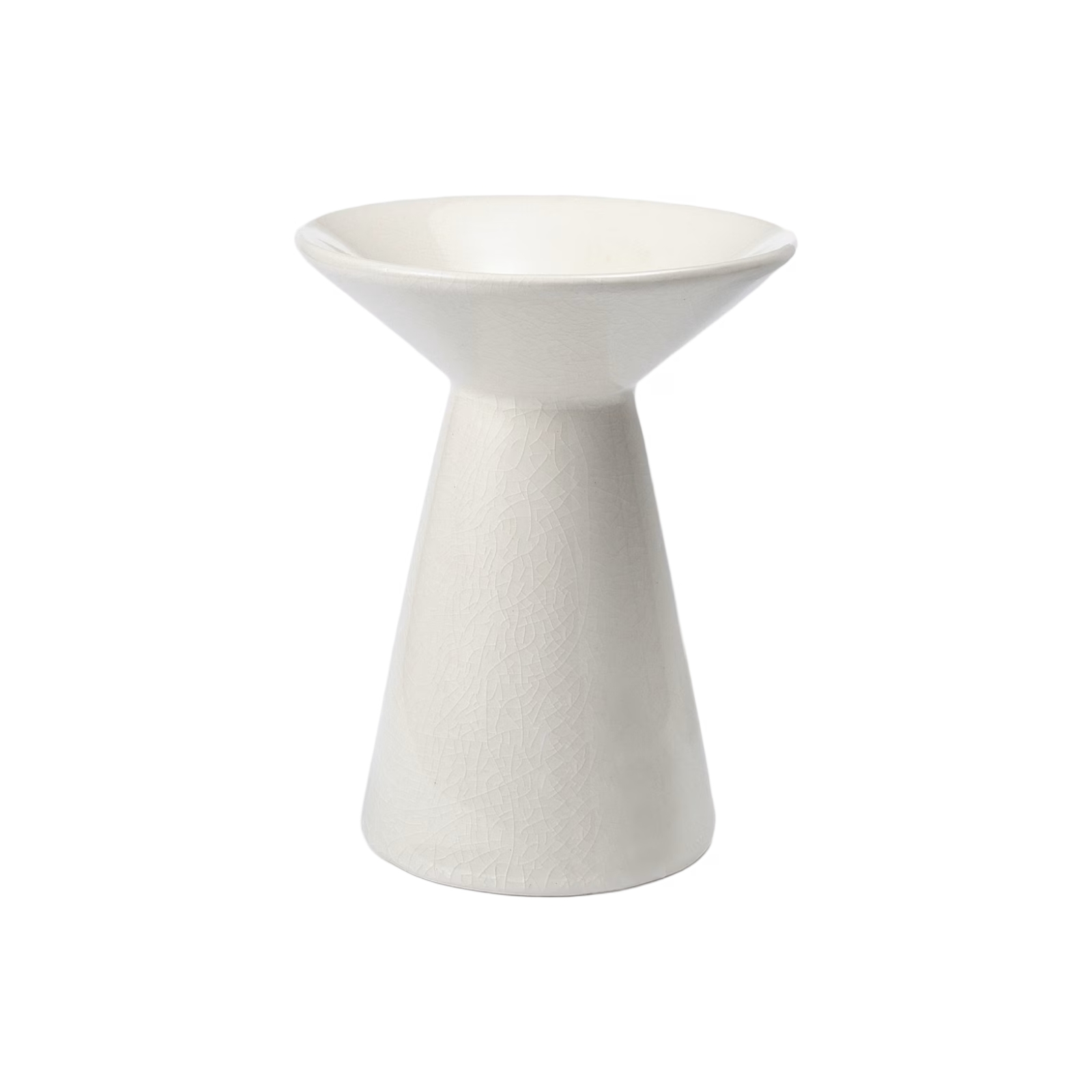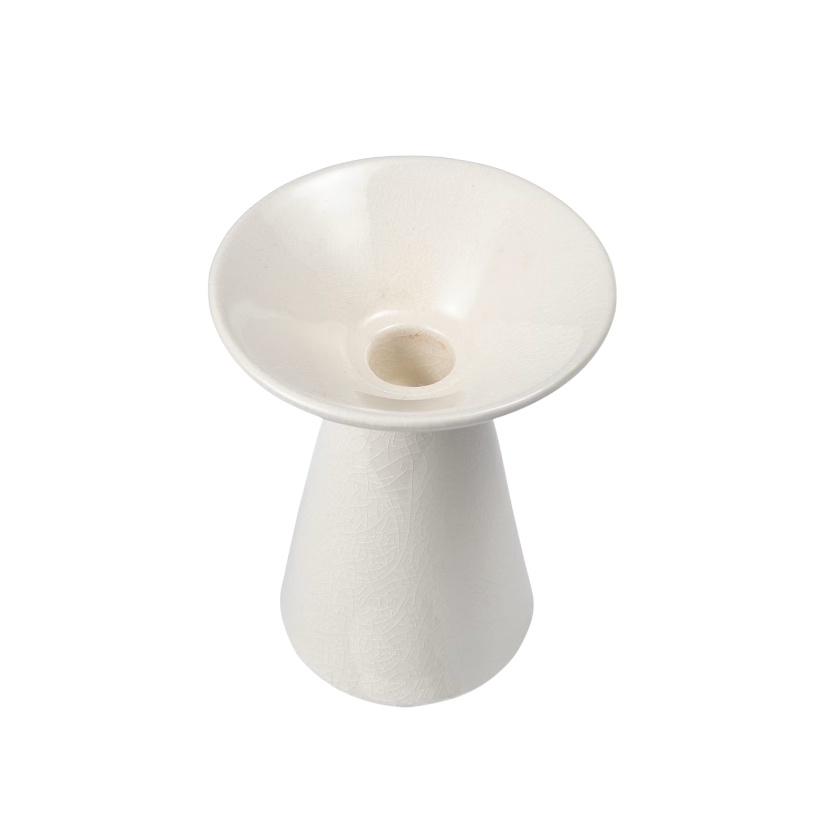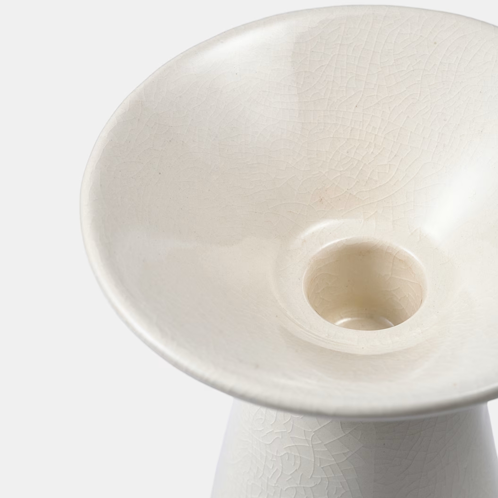 Hög ljusstake med en vid topp, tillverkad i porslin.