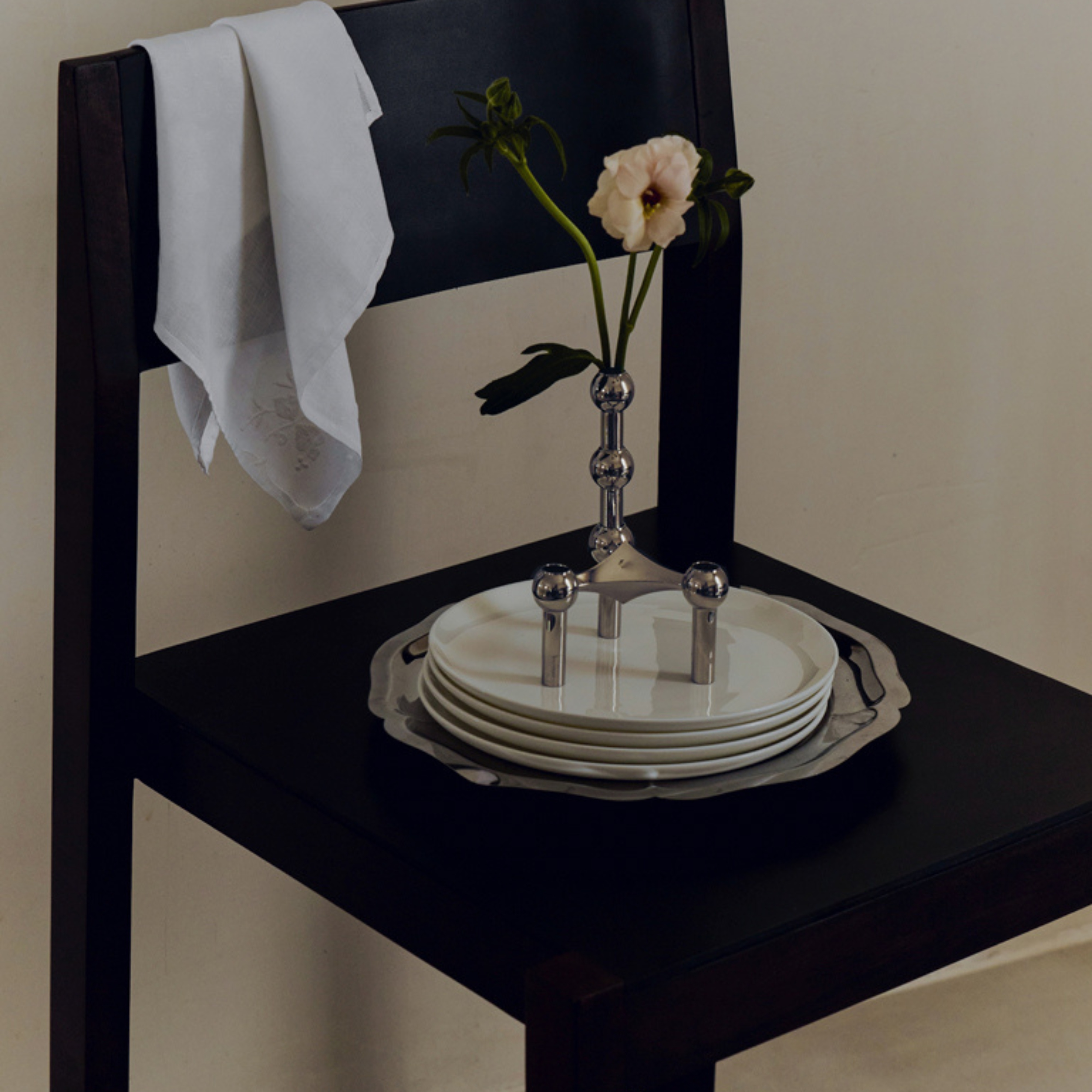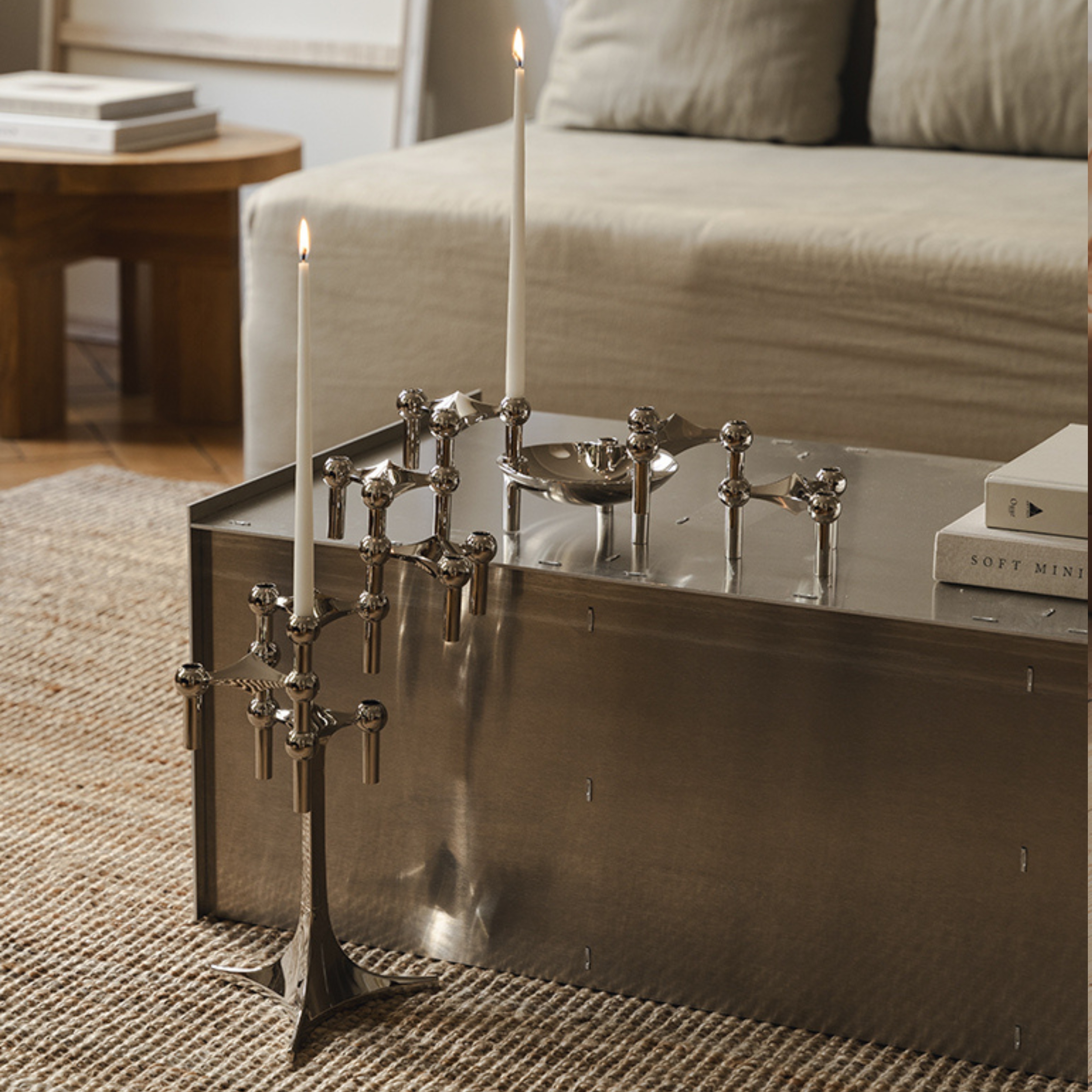 Ljusstaken i krom är den allra första och ursprungliga färgen i STOFF Nagel-designen. Än idag räknas den som ett samlarobjekt i hem världen över – ett personligt uttryck och en formbar skulptur som tar gestalt efter sin ägares unika kreativitet. Skapa och kombinera den med andra STOFF Nagel-designs och använd den med kronljus, eller låt den stå som en dekorativ skulptur i sig själv.