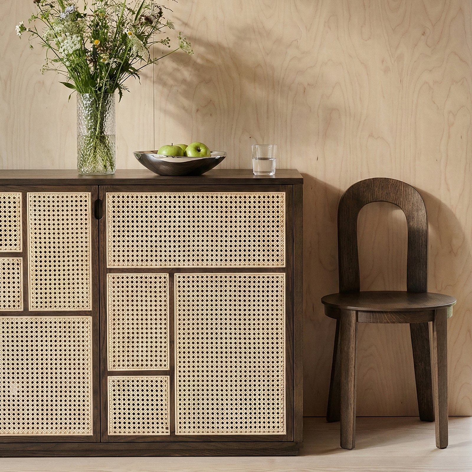 Olivia är formgiven av Tatu Laakso för Design House Stockholm och tillverkad i lackerad ekfanér, rubber wood veneer och massiv ek. Finns i flera lackerade utföranden.