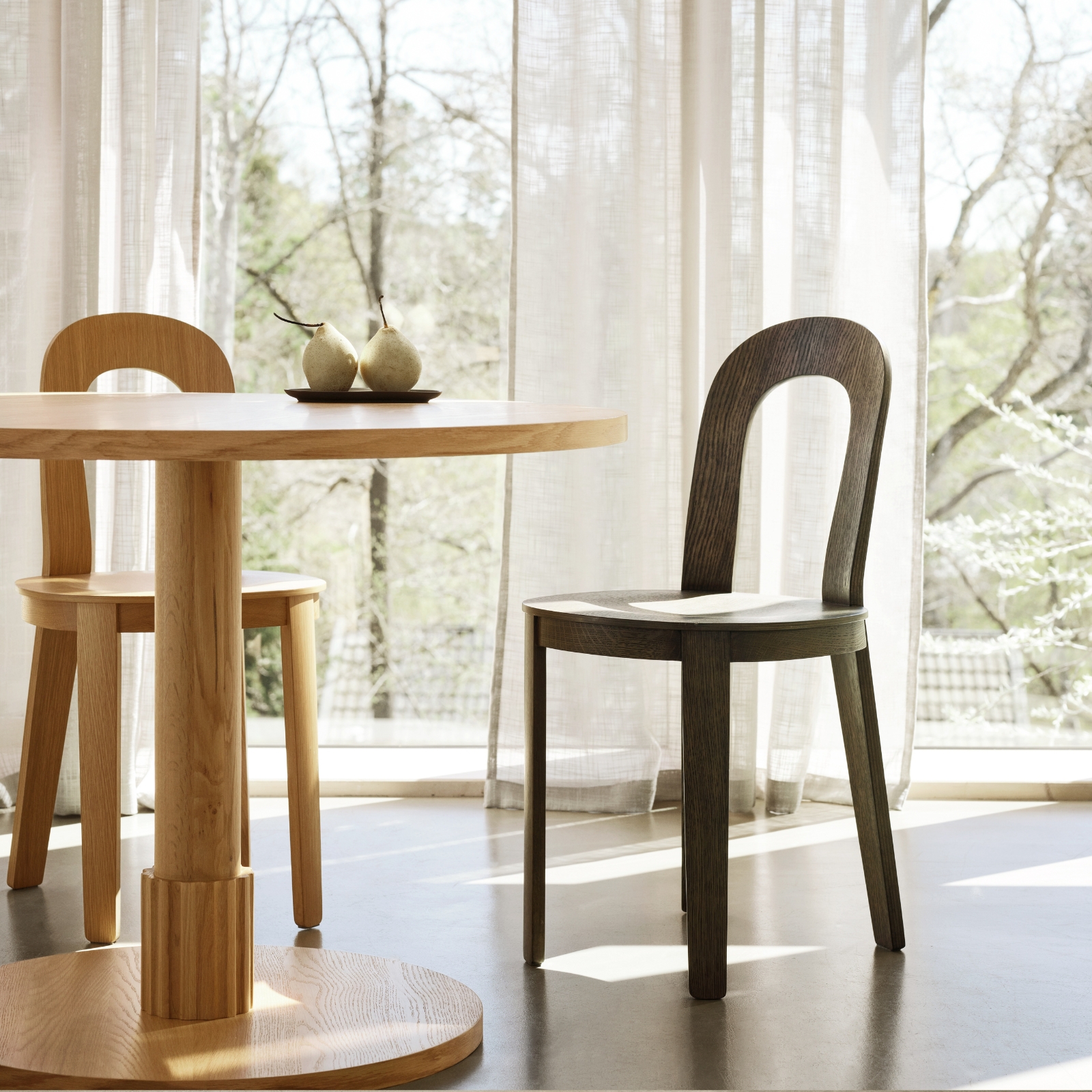 Olivia Chair från Design House Stockholm är en stol i trä med ett lätt och grafiskt uttryck. Den formpressade konstruktionen ger stolen en nätt siluett samtidigt som den erbjuder stabilitet och komfort. Den öppna ryggen och den svagt konkava sitsen bidrar till en bekväm sittupplevelse, även under längre middagar.