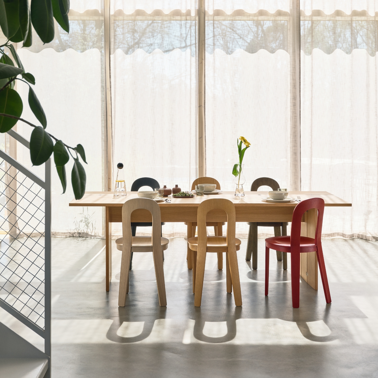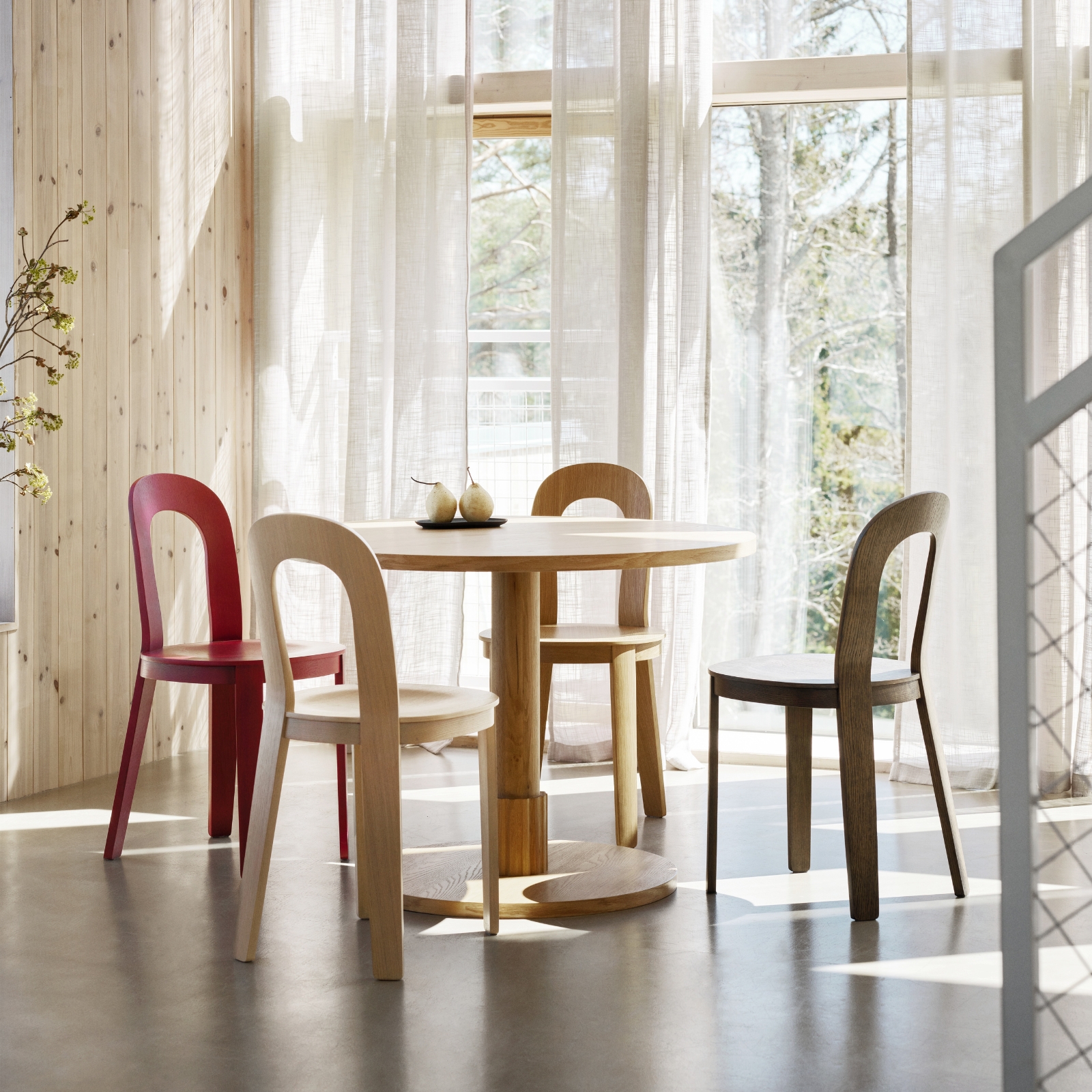 Olivia Chair från Design House Stockholm är en stol i trä med ett lätt och grafiskt uttryck. Den formpressade konstruktionen ger stolen en nätt siluett samtidigt som den erbjuder stabilitet och komfort. Den öppna ryggen och den svagt konkava sitsen bidrar till en bekväm sittupplevelse, även under längre middagar.