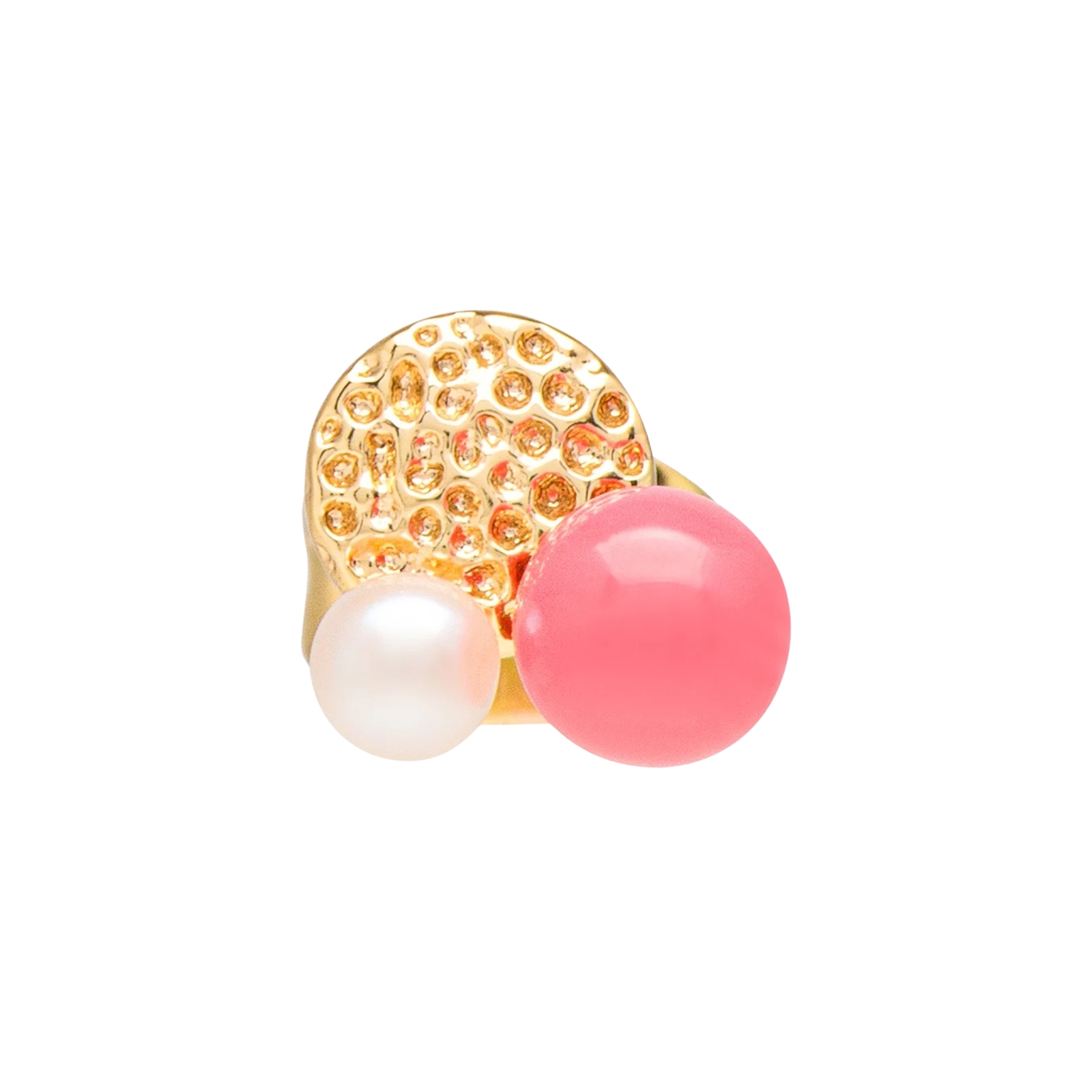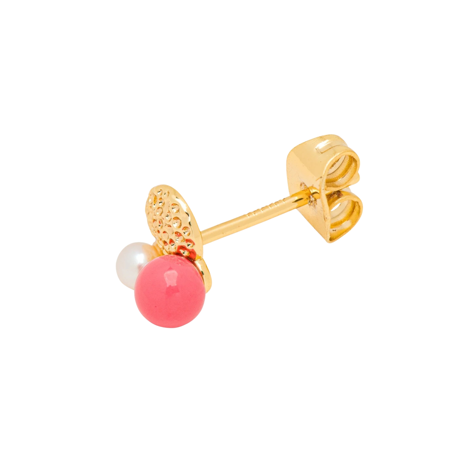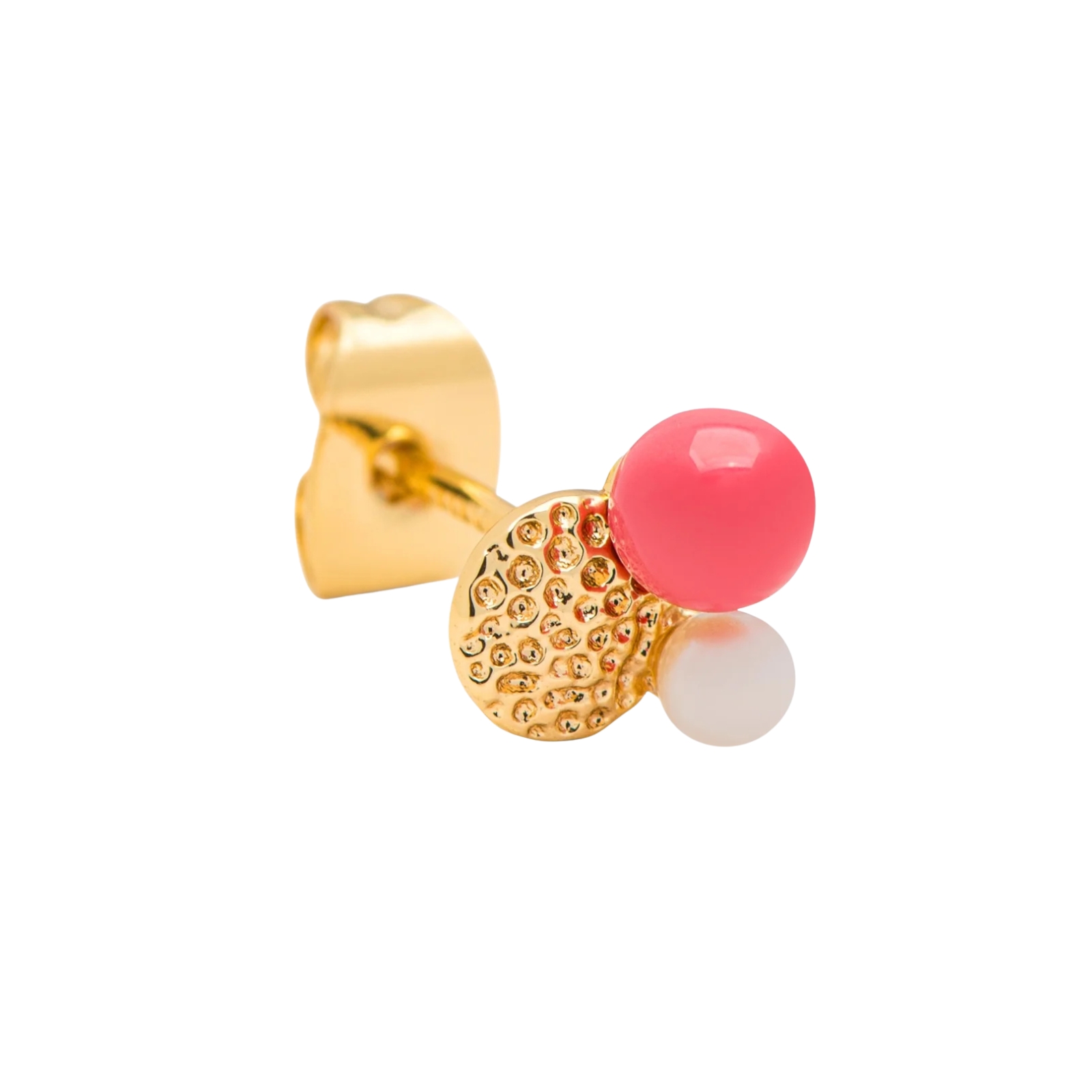 Kollektionen Bouquet är designad som en abstraktion av en blombukett. Bouquet består av små kluster av pärlor, emalj och fina kristaller, som är sammansatta till små, skira buketter. Bouquet blev snabbt en av våra mest populära kollektioner. Bouquet Plate kombinerar en vacker slagen yta med en korallfärgad emaljpärla och en diskret och liten sötvattenspärla. Styla det söta örhänget med ett par tjocka creoler för en voluminös look.