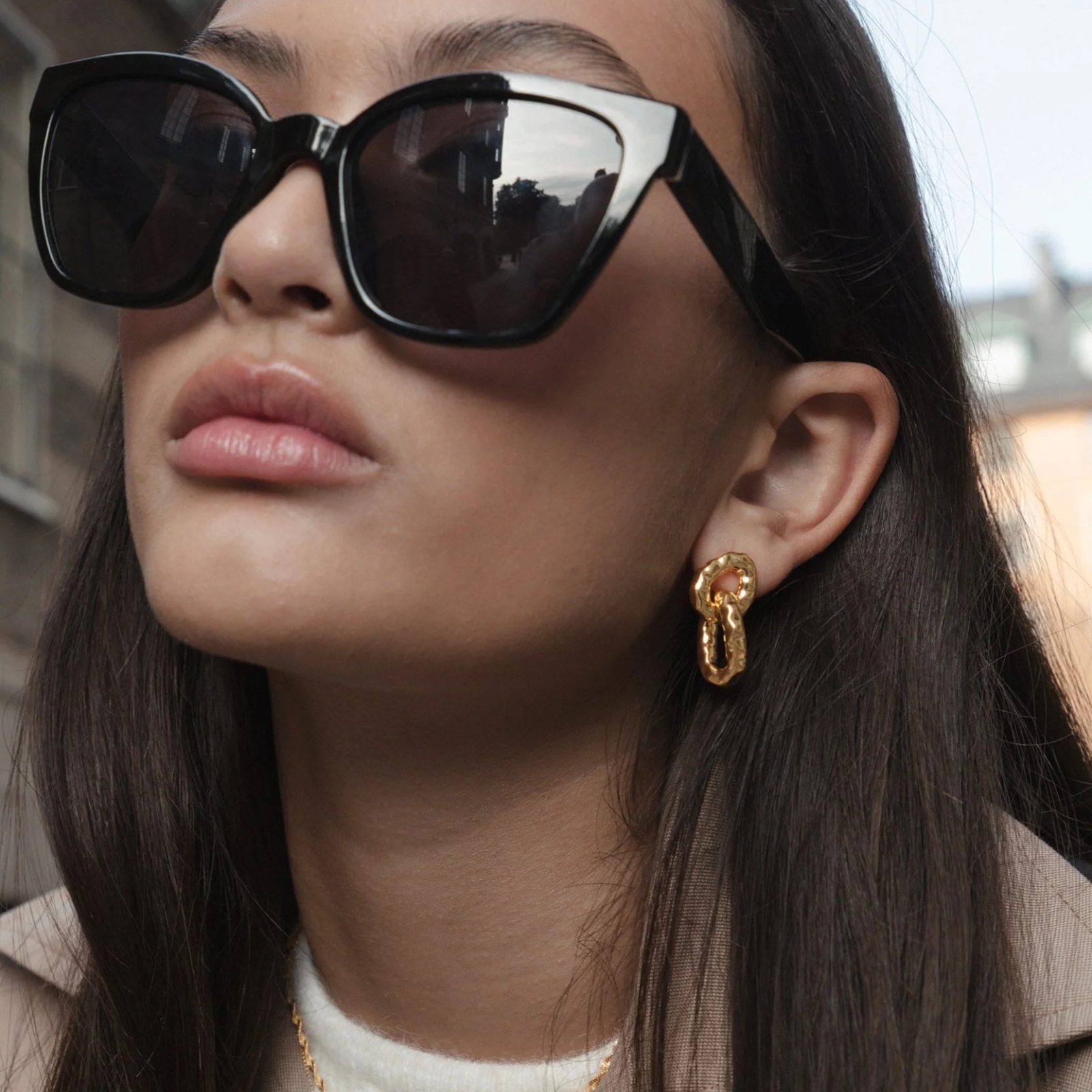 Örhängen med stora, hamrade länkar tillverkade i 100% återvunnet sterlingsilver samt pläterade med 18K guld. Smycket är skapat med produktionstekniken elektroformning, vilket gör de både stora men ändå lätta. Örhängets hamrade textur gör att de fångar ljuset och drar tills sig uppmärksamheten. Från Syster P