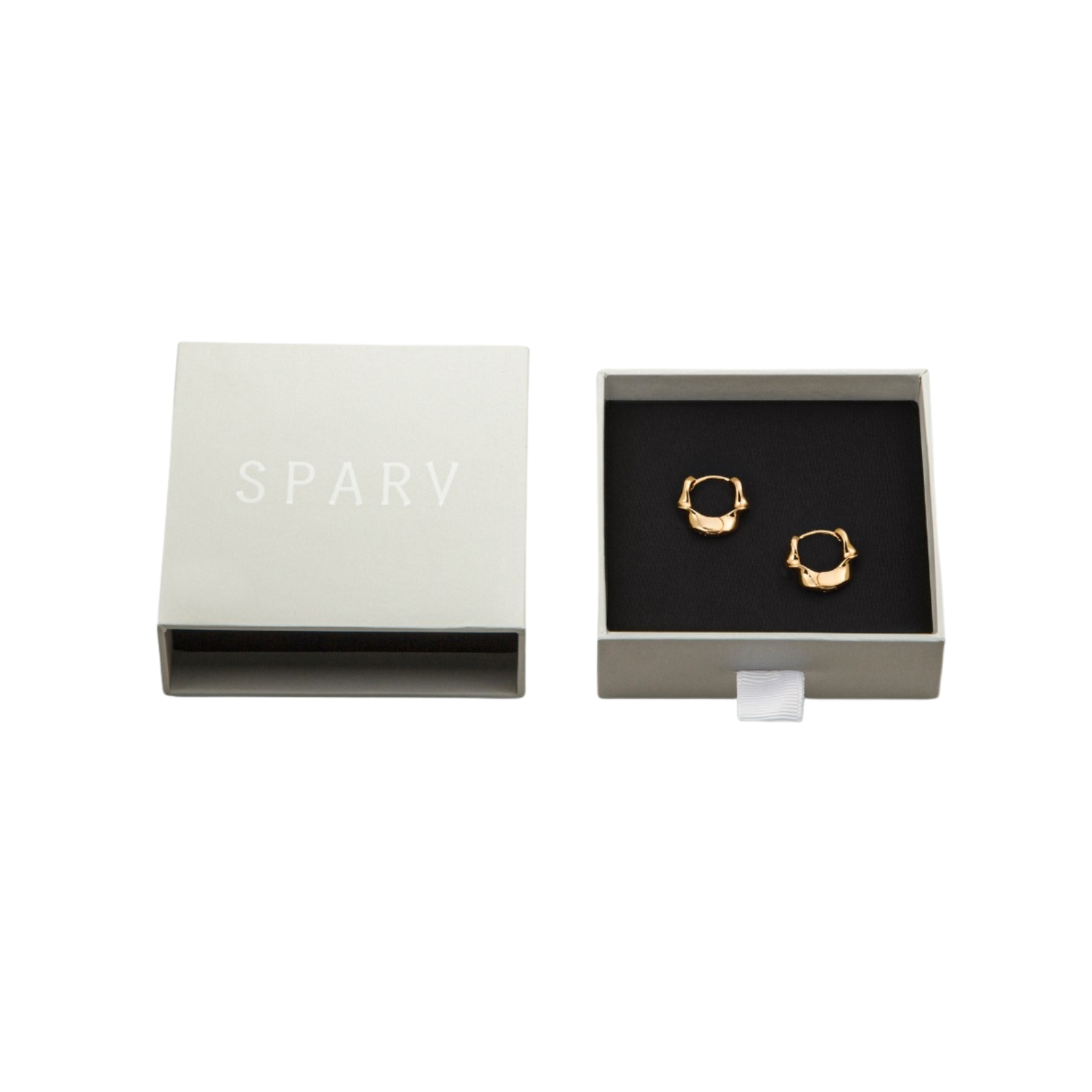 Day One säljs i par och kommer i två utföranden: guldplätering (18K) och silverpläterad mässing. Alla Sparvs smycken är nickelfria och de guldpläterade smyckena har en extra tjock plätering av 18K som är gjord för att hålla över tid. Varsamt förpackade i askar av återvunnet och FSC märkt papper.- Skandinavisk smyckesdesign