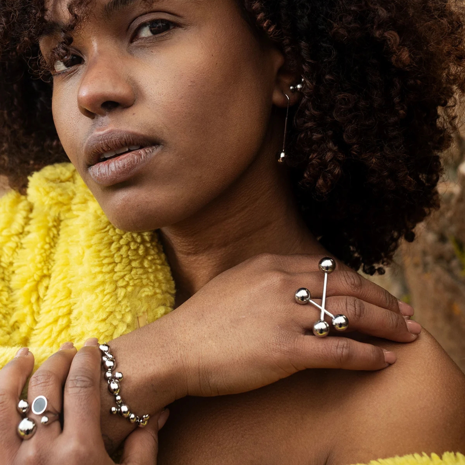 Bär dem ensamma för ett stilrent uttryck, eller kombinera med andra smycken ur Iconic Solar Series för en djärvare, lager-på-lager-look. Avskalade men iögonfallande – tidlös design med en kosmisk touch. Tillverkade av återvunnet material för att få dig att känna dig självsäker och unik.