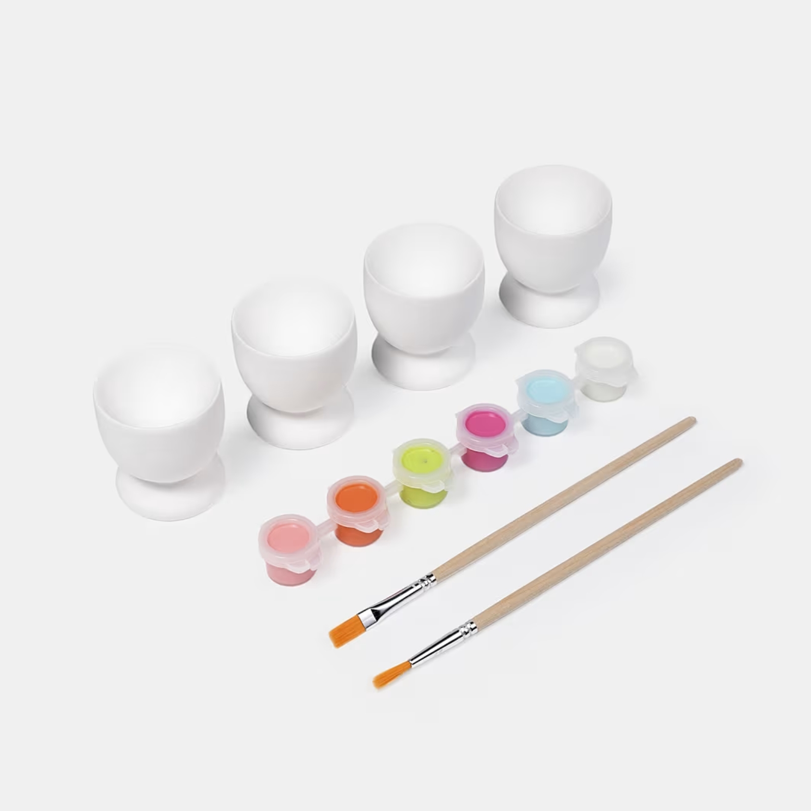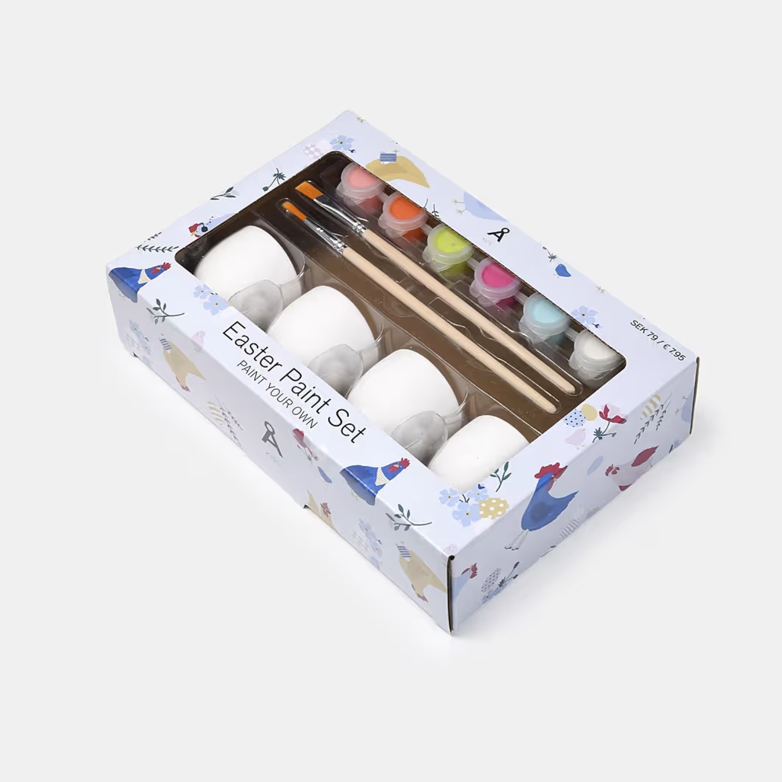 Välj mellan olika modeller, bland annat påskägg, påskharar och äggkoppar.• Påskpyssel målarkit