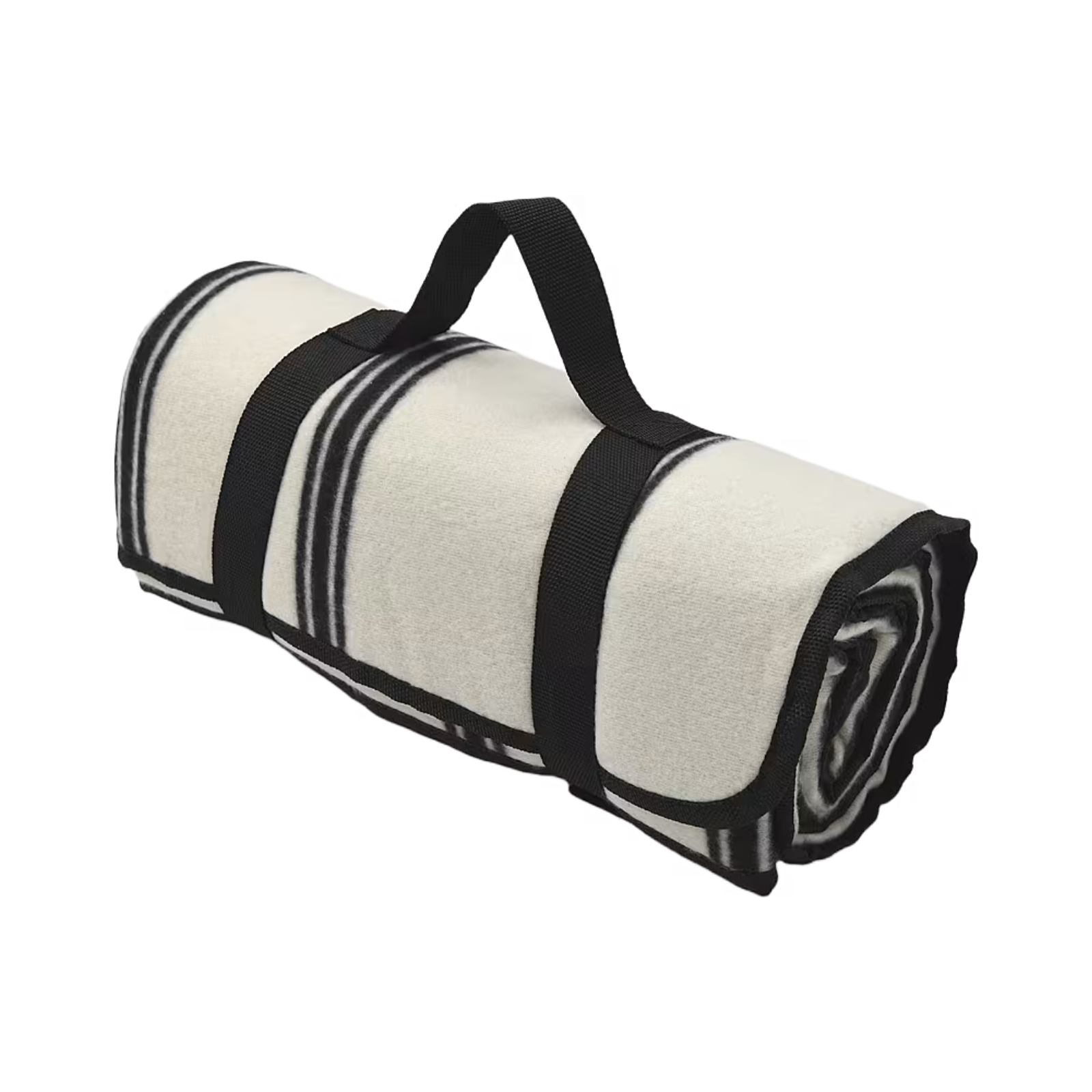 Randig picknickfilt i fleece med EVA-beklädd undersida som står emot fukt.