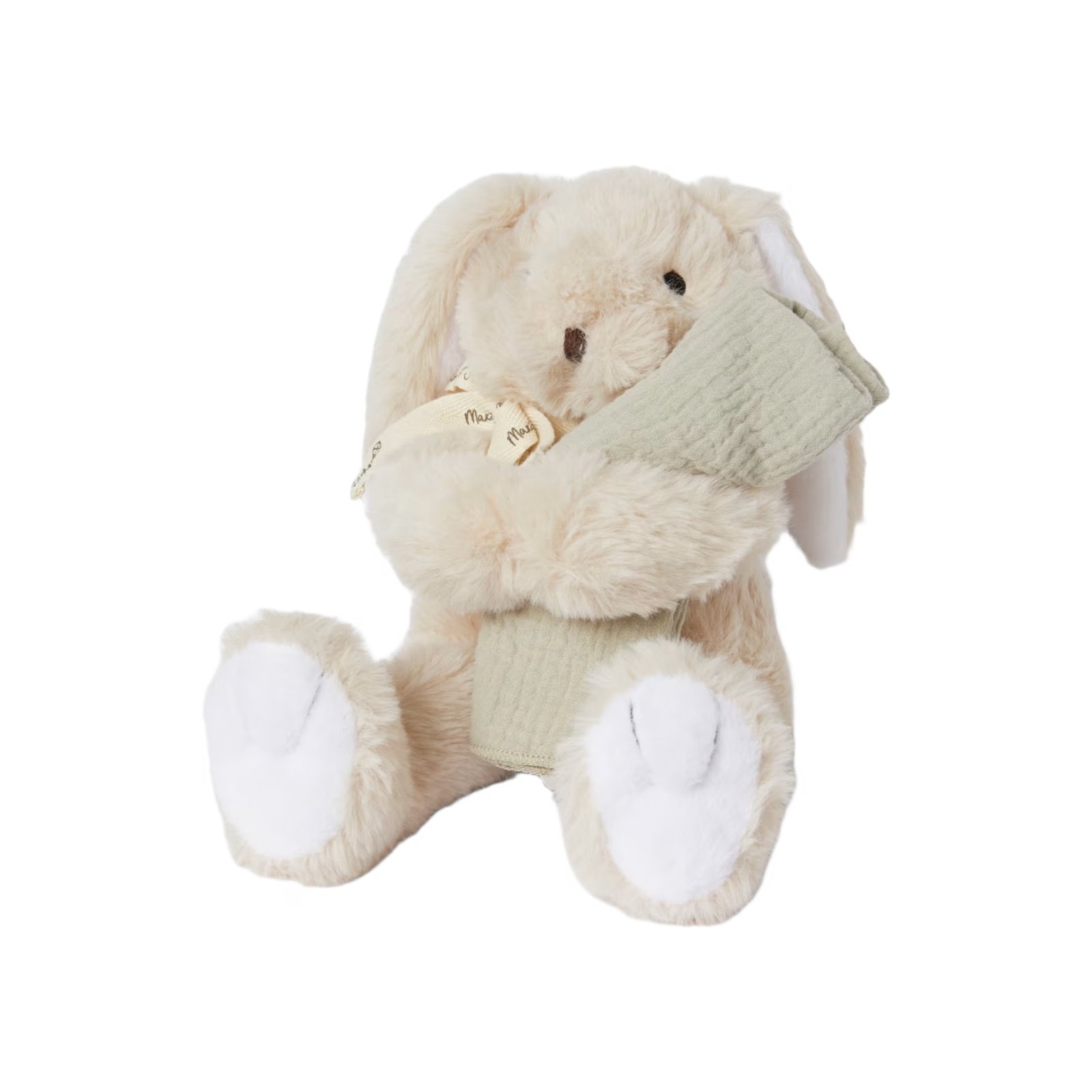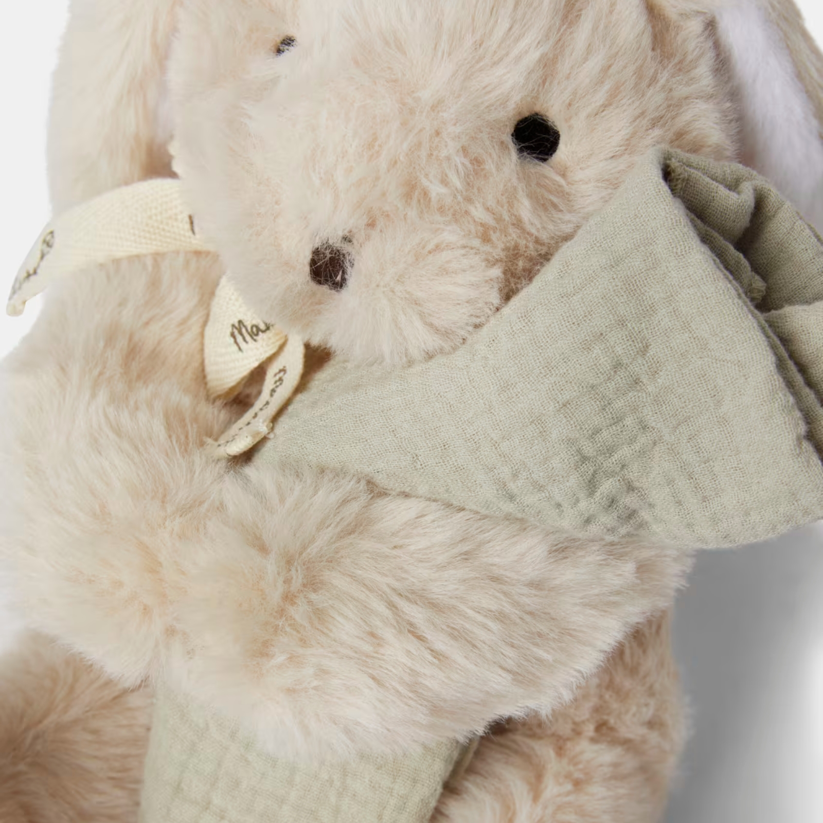 Filten är mjuk och skön att ha i sängen eller vagnen.• Gåvoset med gosekanin och snuttefilt i bomullsmuslin